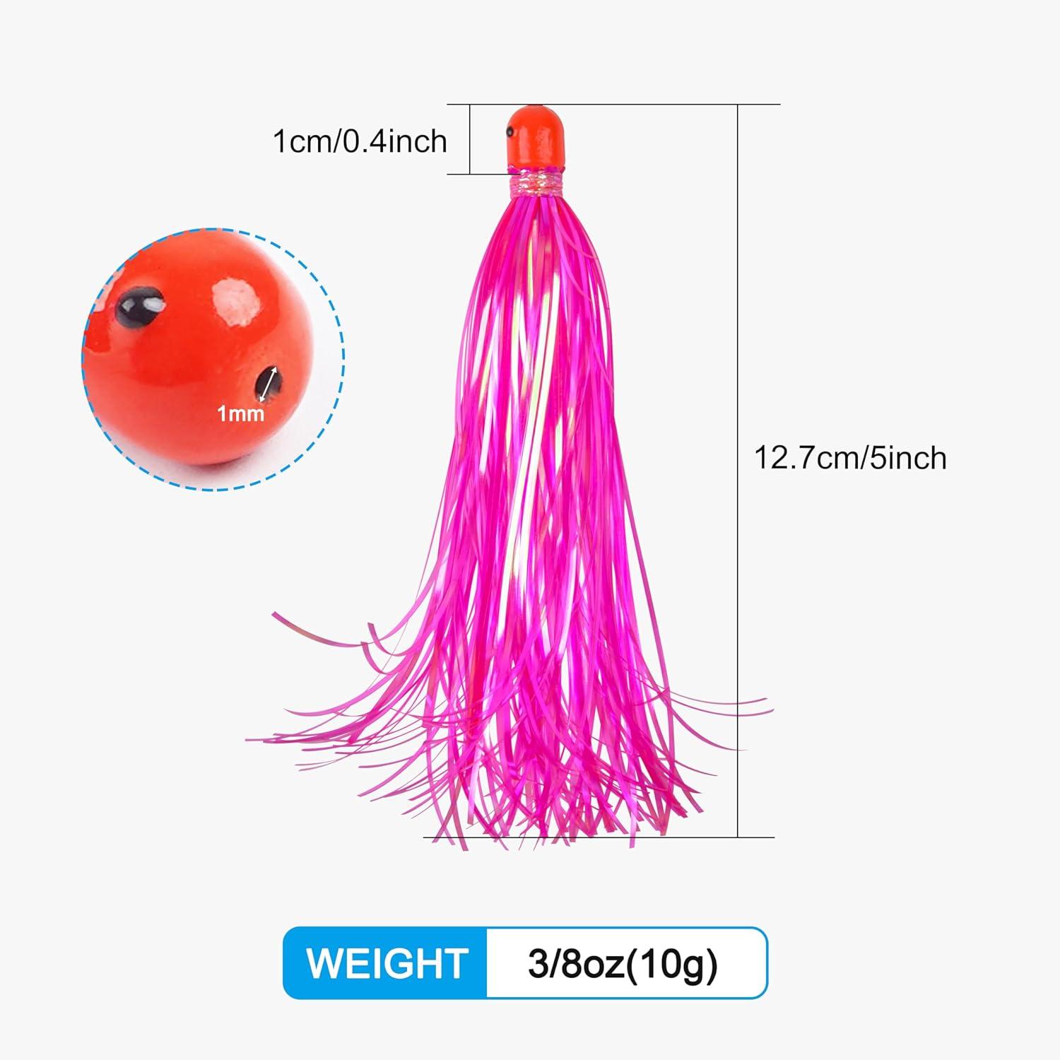 【High Quality】Fishing teaser skirt features a heavy jig head for fast drop-off, upgrade electric crystal hair and special pearl flash material have excellent moisture and water resistance. Strong and durable for saltwater fishing.