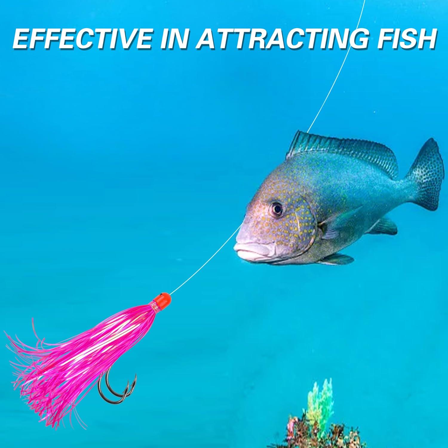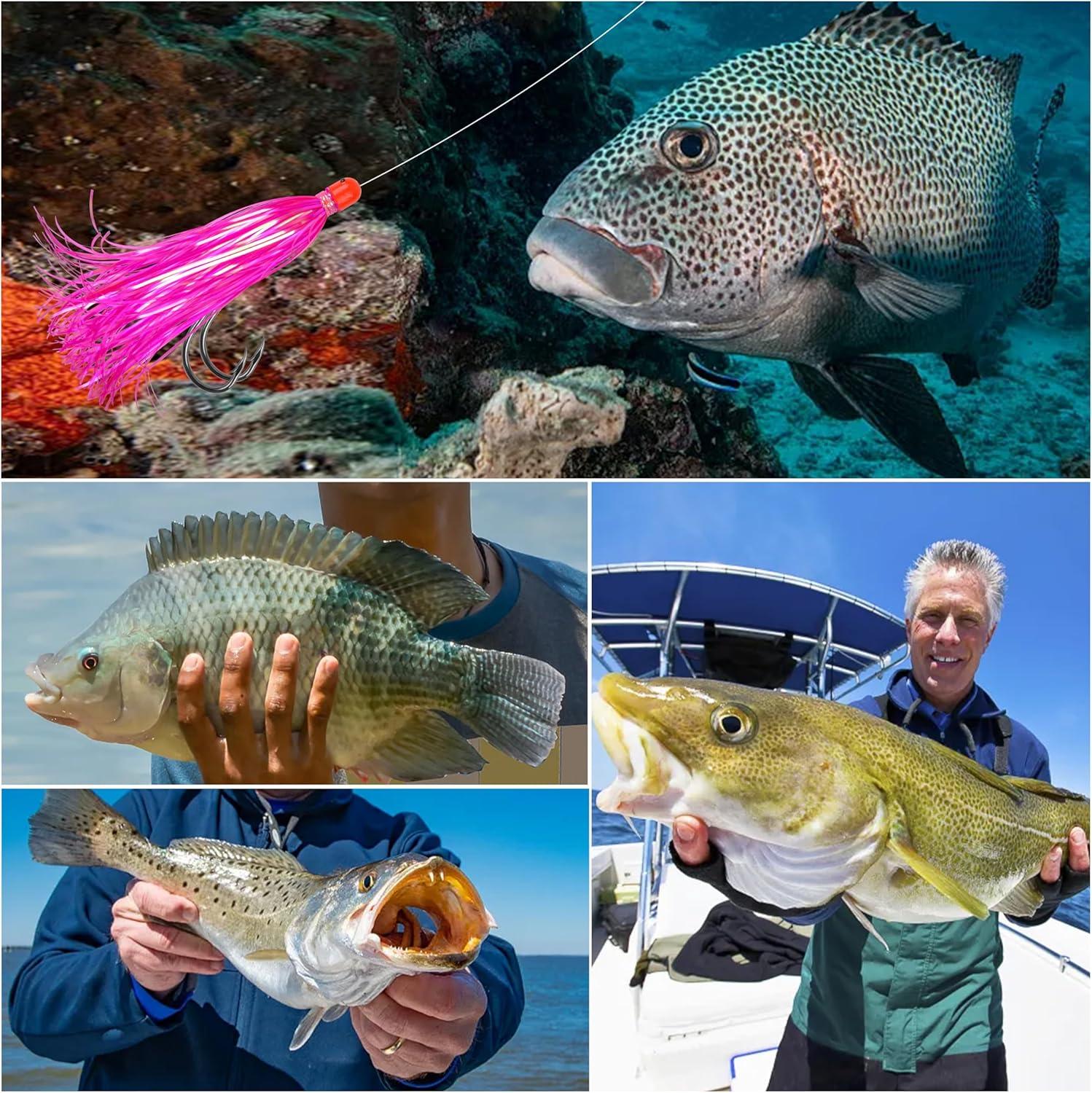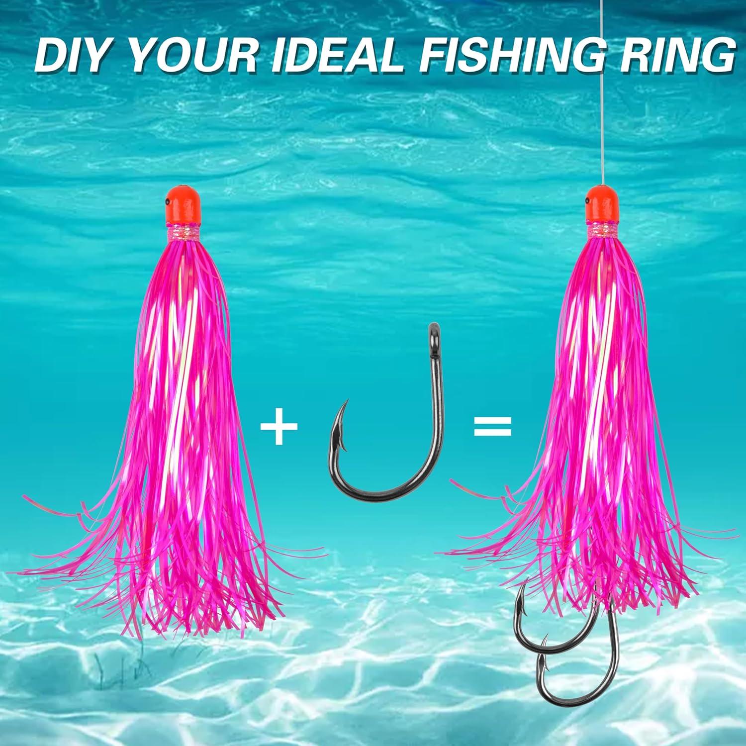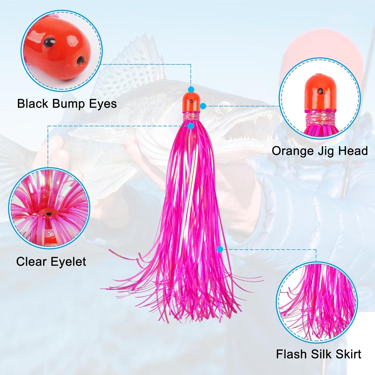 【High Quality】Fishing teaser skirt features a heavy jig head for fast drop-off, upgrade electric crystal hair and special pearl flash material have excellent moisture and water resistance. Strong and durable for saltwater fishing.