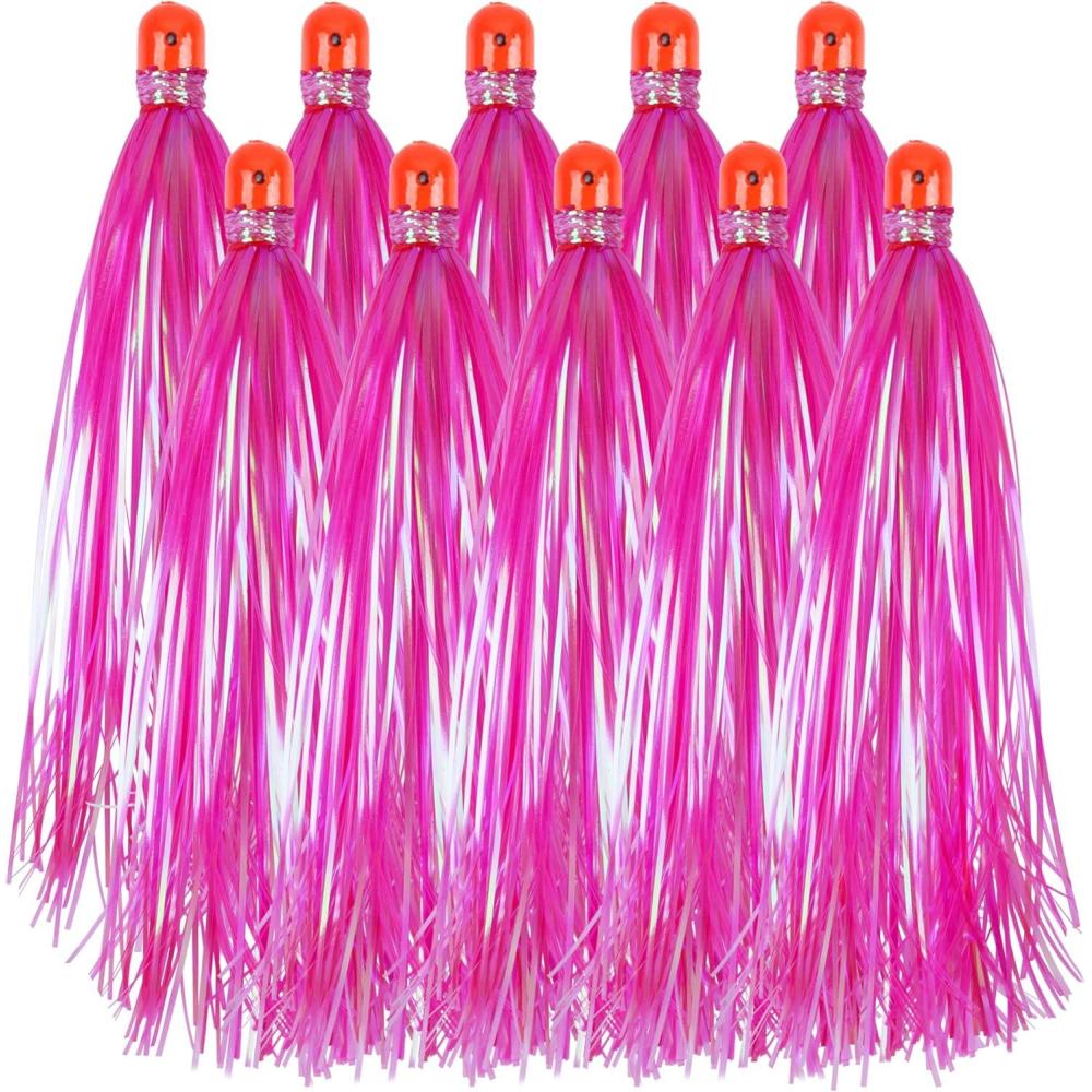 OROOTL Mylar Flash Teaser Tail Bucktail Teasers Weighted Jig Head Fishing Lures Mylar Fishing Skirt Hair Bait Jigs 3/8oz Bullet Sinkers Head with Bucktail Teaser 10pcs/Pack(Pink-10pcs)