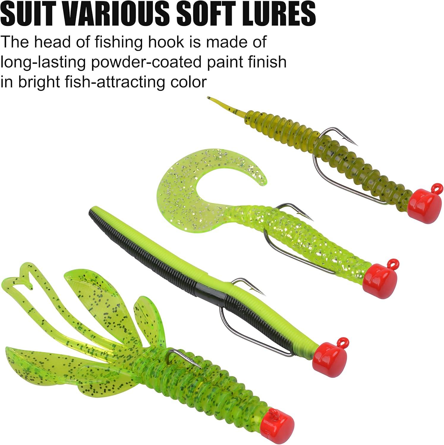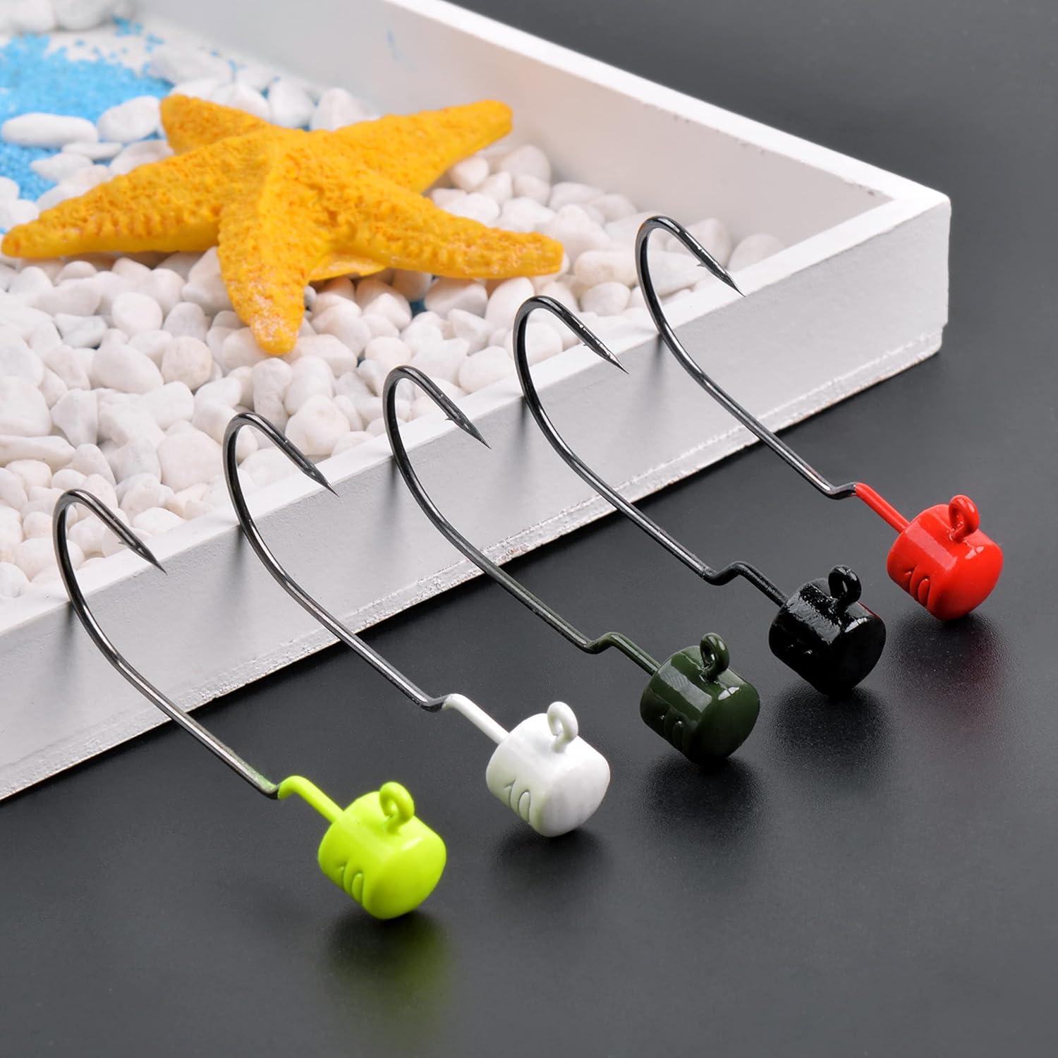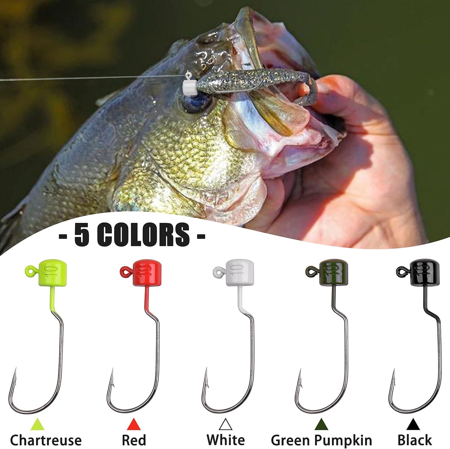 🐟【POPULAR COLORS】The Ned Rig Jig Heads Kit includes the 5 most popular colors of Ned Rig jig heads to match almost any fishing application, Black, White, Green Pumpkin, Chartreuse and Red.