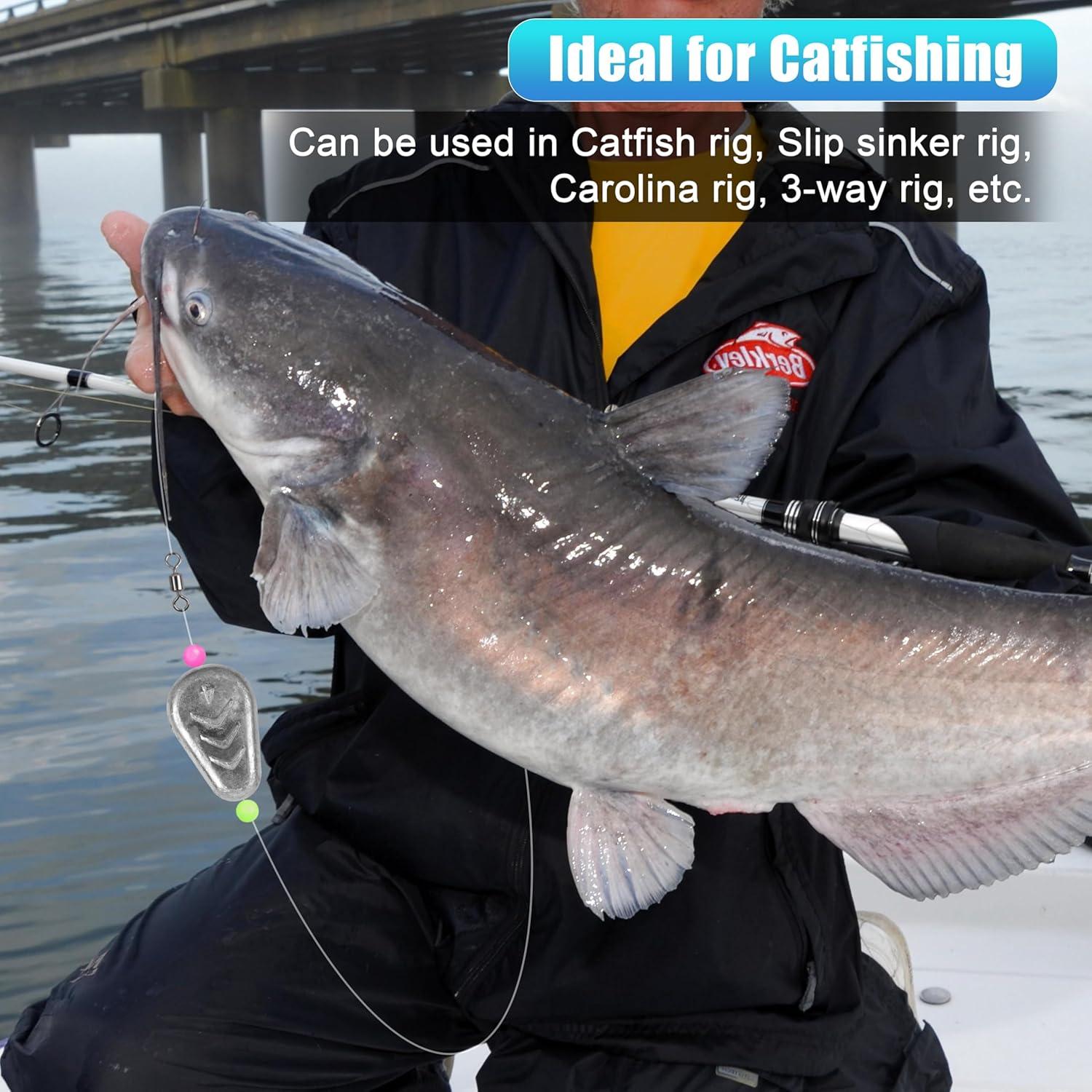 – Application: The catfish sinkers weights are ideal for pompano, croaker or halibut in surf, and catfish or bass in the river. Ideal for Catfish rig, Slip sinker rig, Carolina rig, 3-way Rig and many other applications