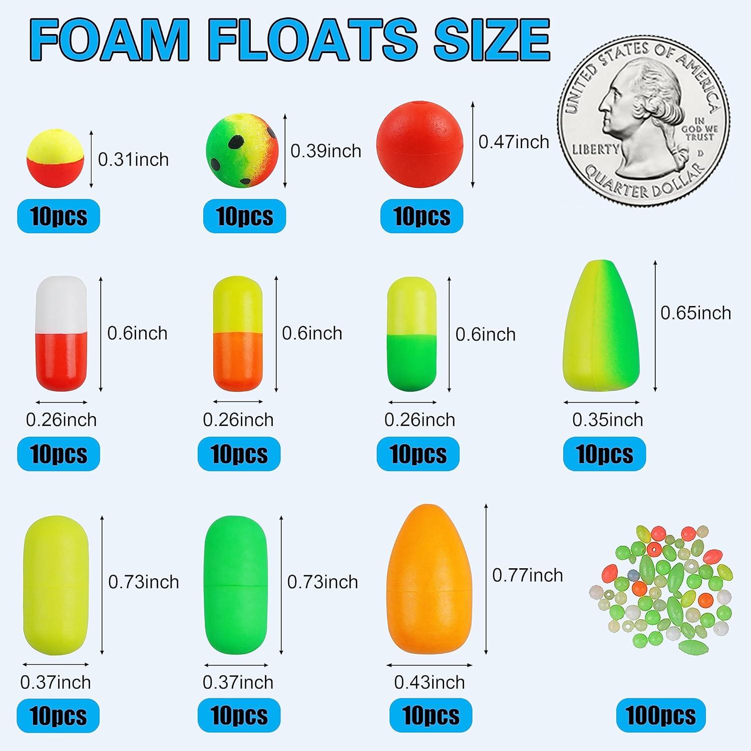 OROOTL Pompano Rig Floats Beads Kit, 300pcs Pompano Floats Fishing Beads Set Foam Snell Bobbers for Surf Fishing Live Bait Walleye Rig Making
