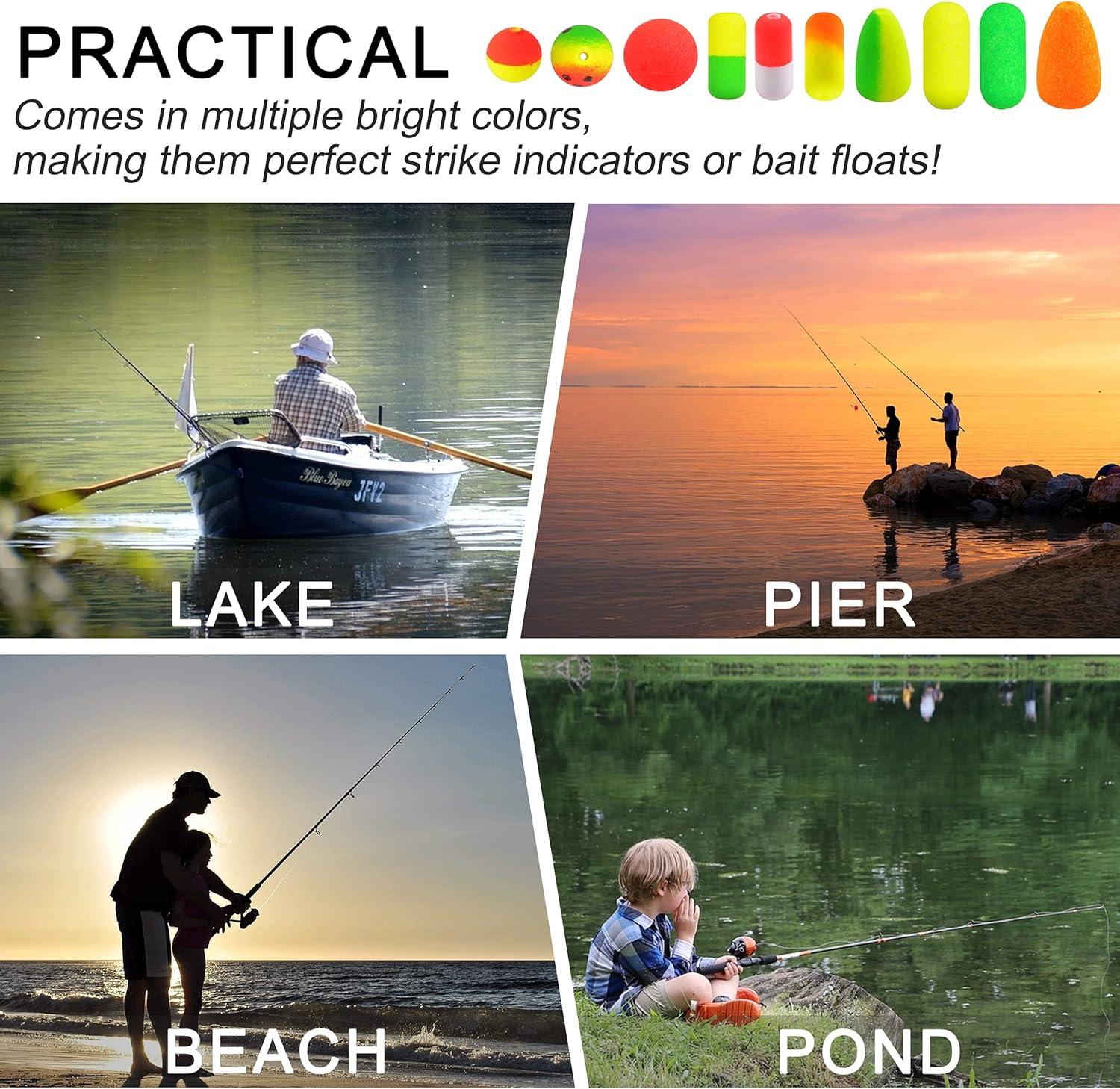 EASY TO USE: There is a smooth hole in the center of the fishing floats and beads, the fishing line can pass through the hole easily. You can place it on the fishing line above the hook to help you catch more fish.
