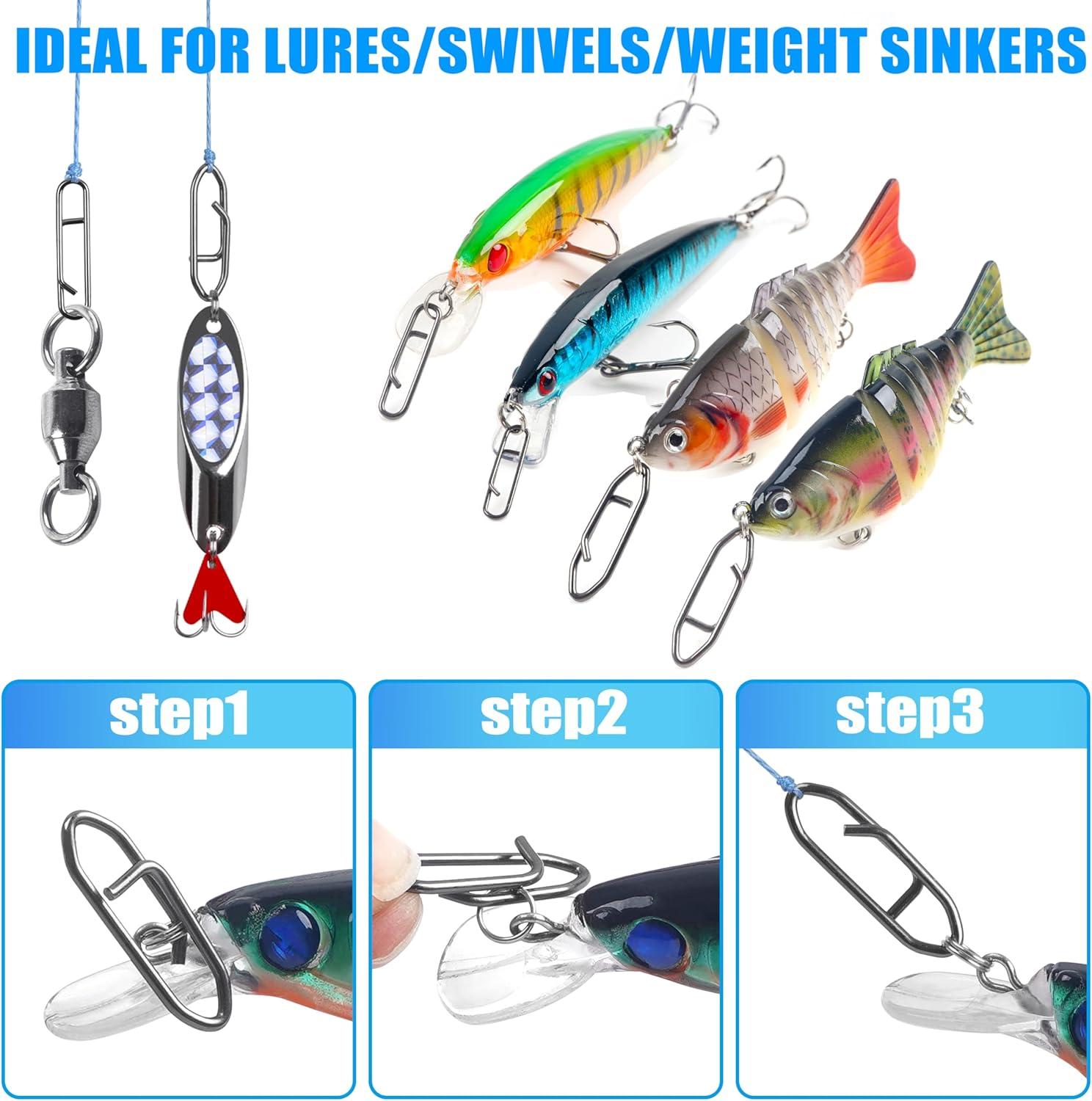 – Rotatable: The fast change fishing snap clips adopt 360 degrees rotatable design, which make your lure more dynamic and swims like a realistic fish to attract more fish, unlike ordinary lures that are stiff and twisted.