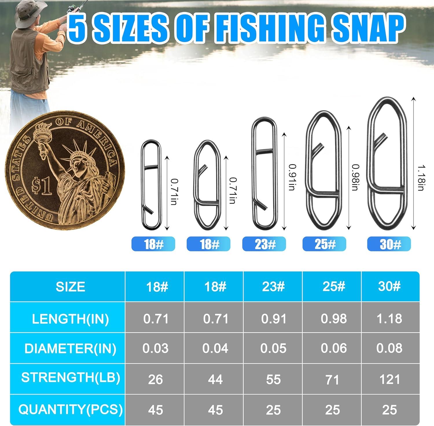OROOTL Power Fishing Clips Kit Snap Swivels Fishing Tackle High Strength Snap Connector for Freshwater Saltwater Fishing