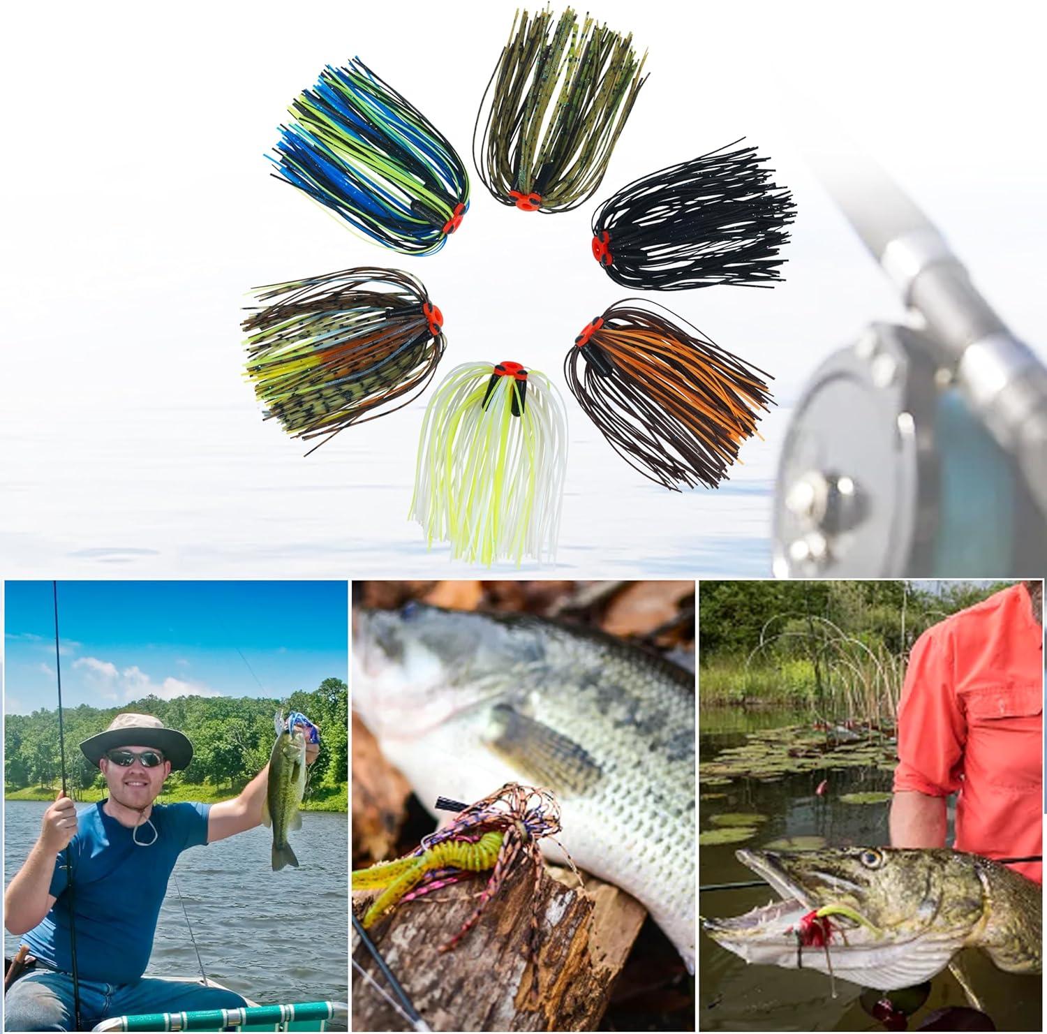 【Attractive Design】Each silicone jig skirt contains 50 colorful strands, each with tiny pearl sequins that attract the attention of fish; the soft fishing jig skirts produce a wonderful underwater movement that provokes fish to strike