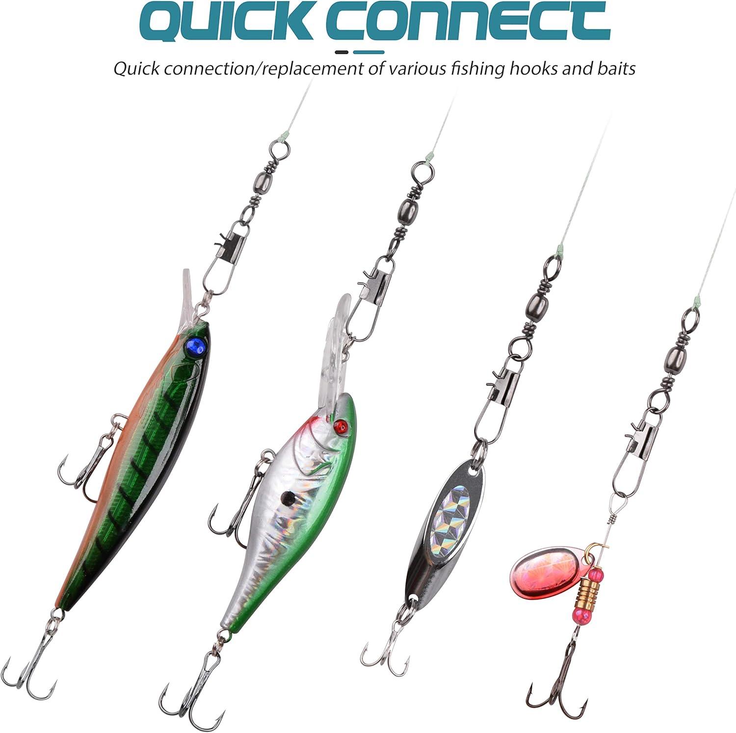 QUICK CONNECT: 2-in-1 fishing swivel snap design for quick replacement of various fishing hooks, baits, leaders and lines in seconds. Save time from different fishing gears together.