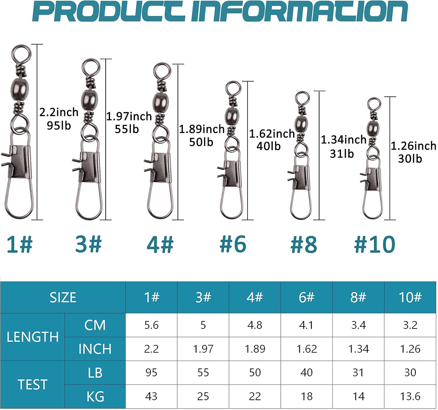 QUANTITY: 120pcs Barrel Swivel with Safety Snap. (Optional Sizes: 1#, 3#, 4#, 6#, 8#, 10#)