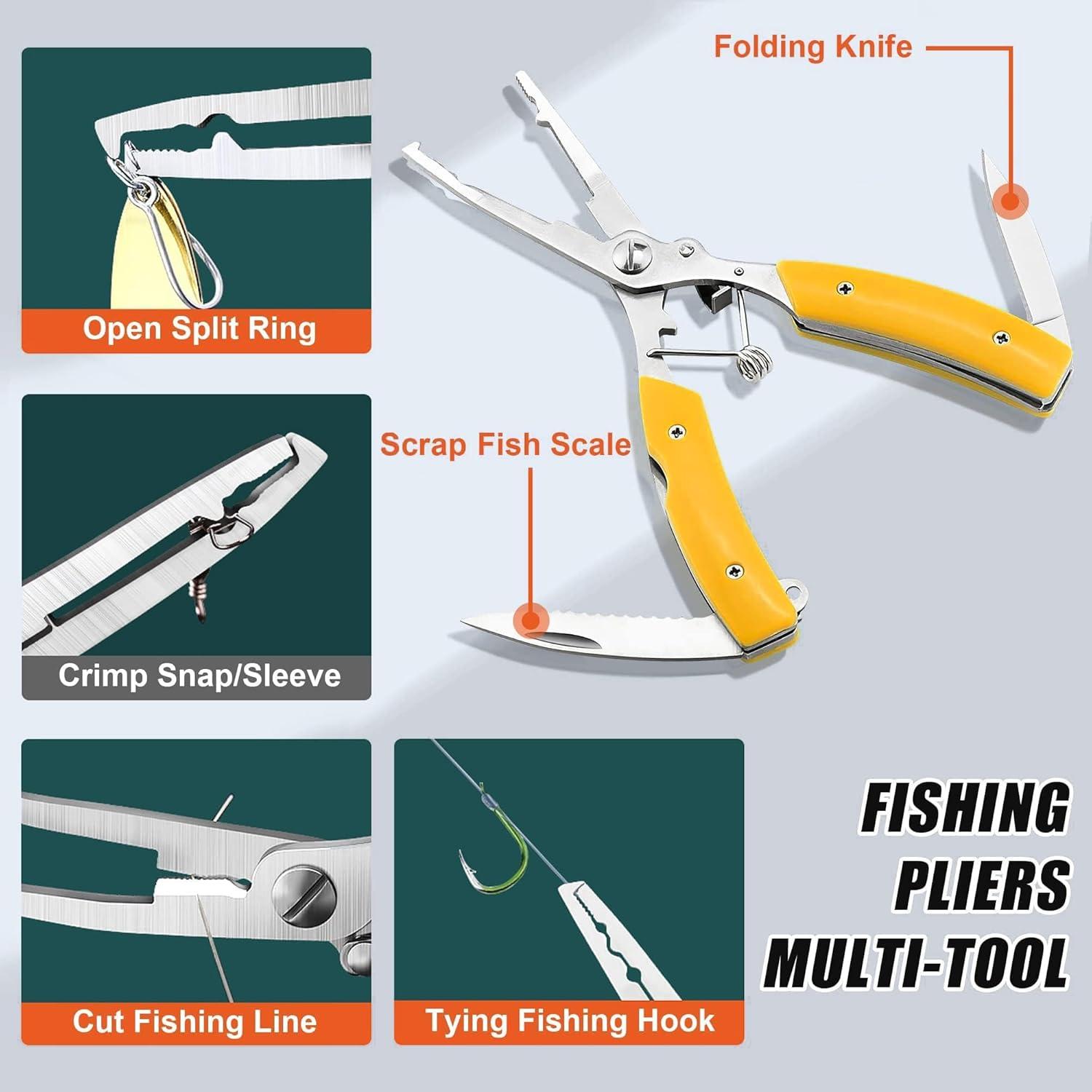 【FISHING PLIERS】Multifunctional stainless steel fishing pliers can be applied to removing hook, opening split rings, cutting wire and fish scaling, also great for outdoor fishing trips.