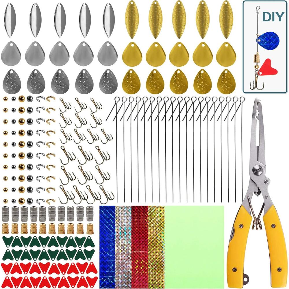 OROOTL Spinner Lure Making Kit, 246pcs Fishing Lure Making Kit Spinner Blades Fishing Pliers Lure Bodies Spinnerbait Shafts Treble Hooks Set Walleye Rig Making Supplies