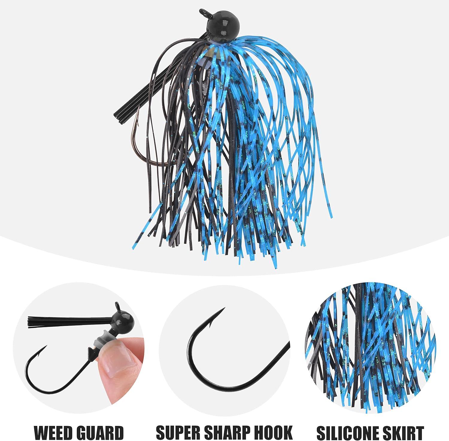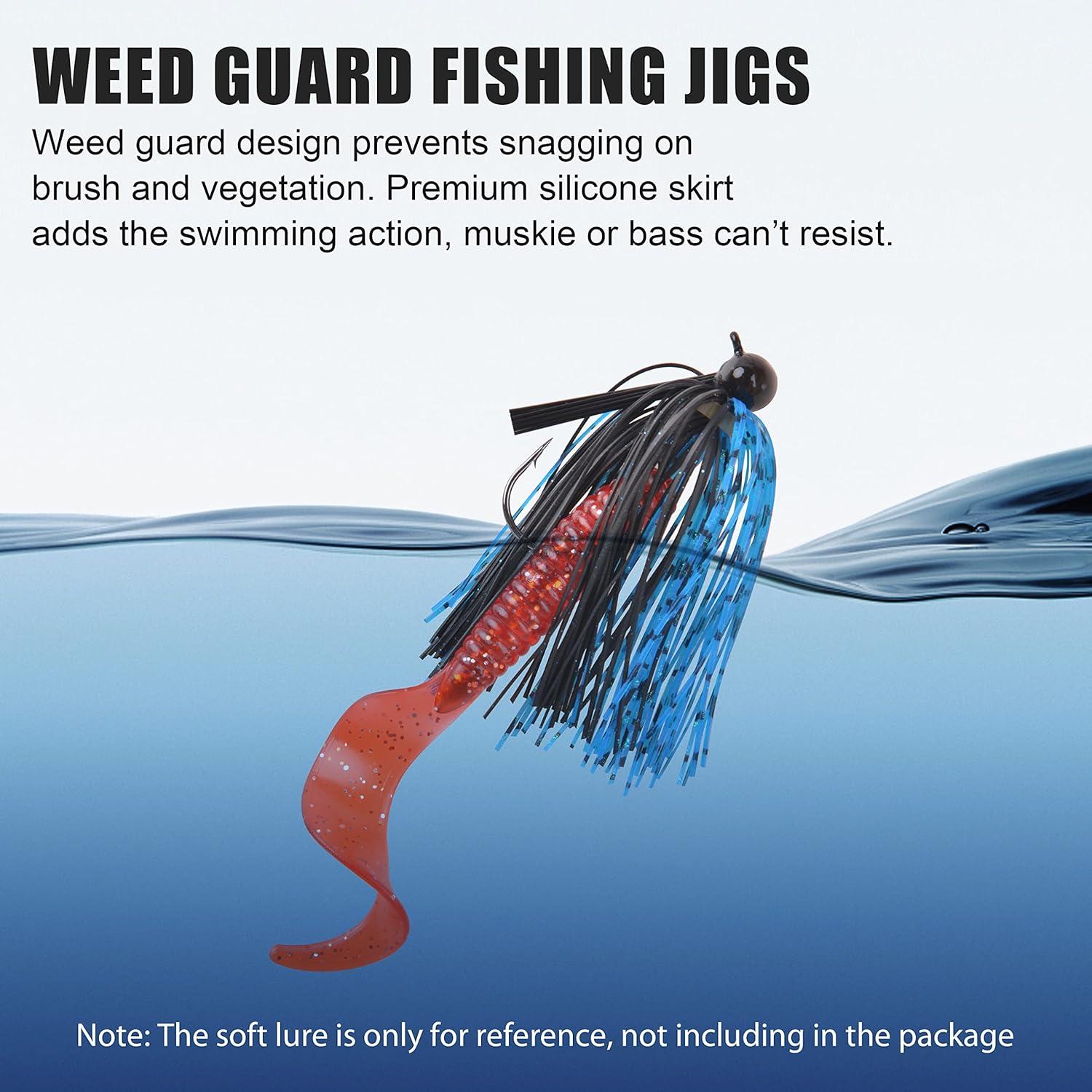 【WEEDLESS DESIGN】Weed guard prevents snagging on vegetatio, each bass jig can come through cover easier.