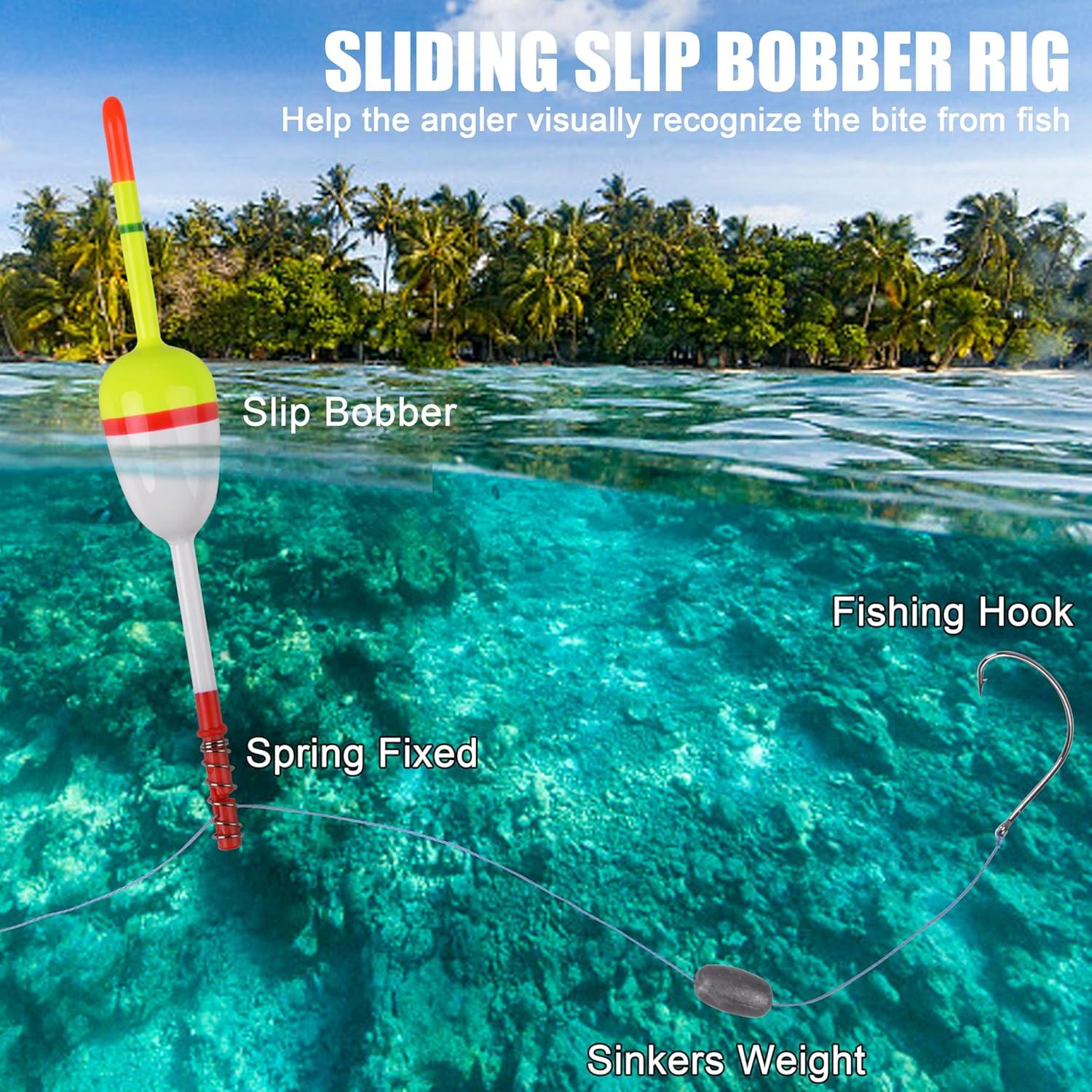 Spring Slip Bobbers are extremely sensitive and visible, very responsive when the fish takes the bait, it can slide freely up and down your fishing line.