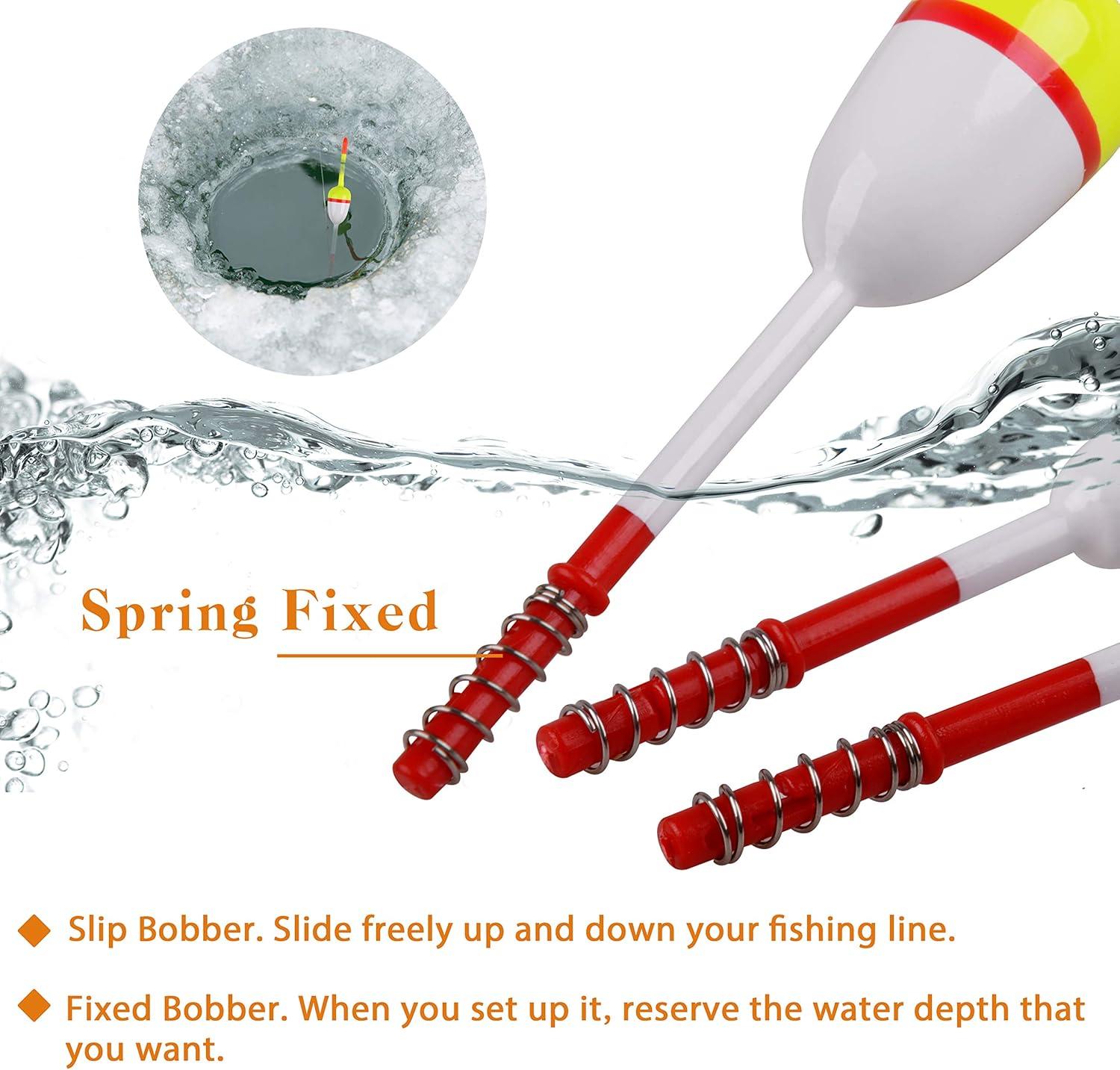 【Easy To Adjust】The float fishing bobber position can be adjusted by rotating the spring to present your bait to any depth and keep your bait in the strike zone longer, suitable for fishing in various areas of different depths.