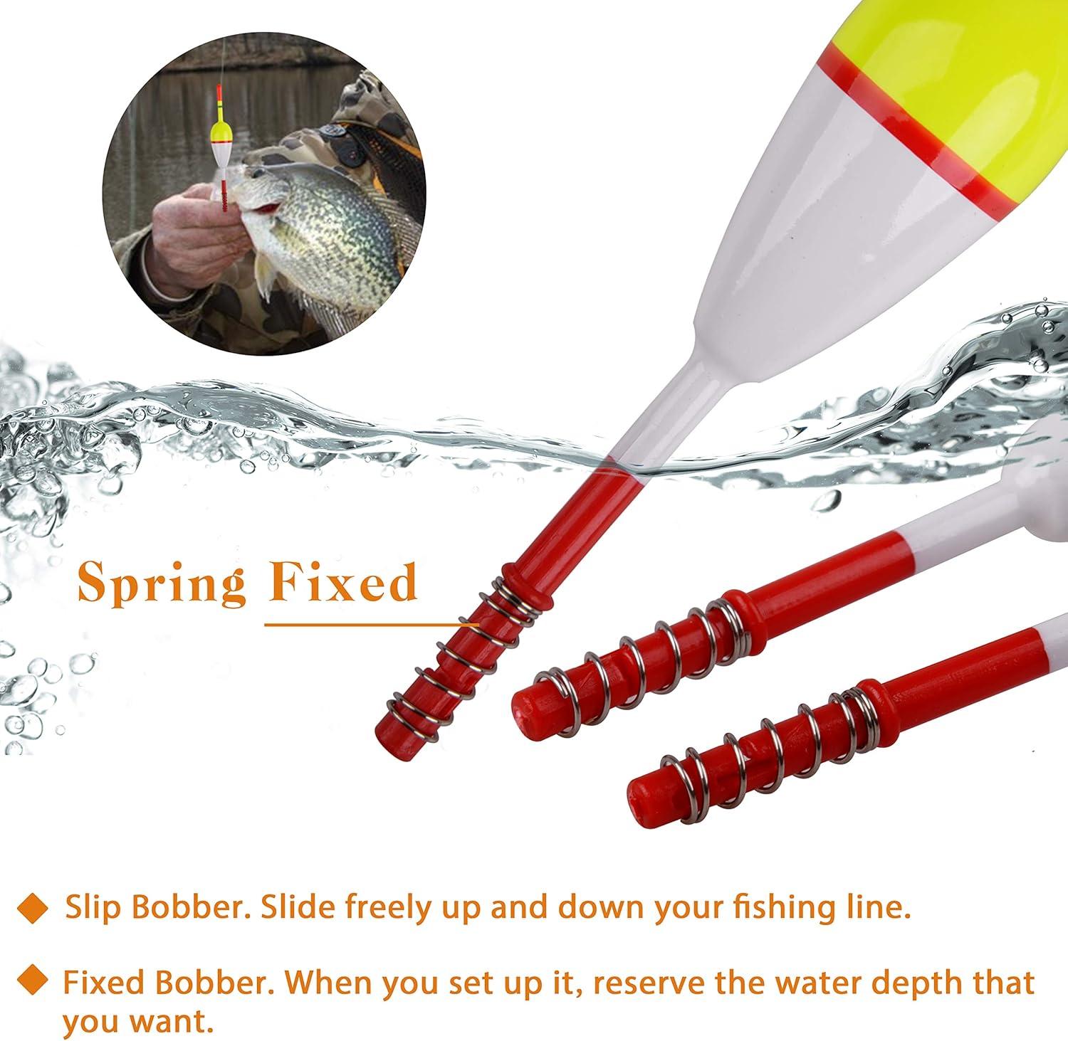 Spring Slip Bobbers are extremely sensitive and visible, very responsive when the fish takes the bait, it can slide freely up and down your fishing line.