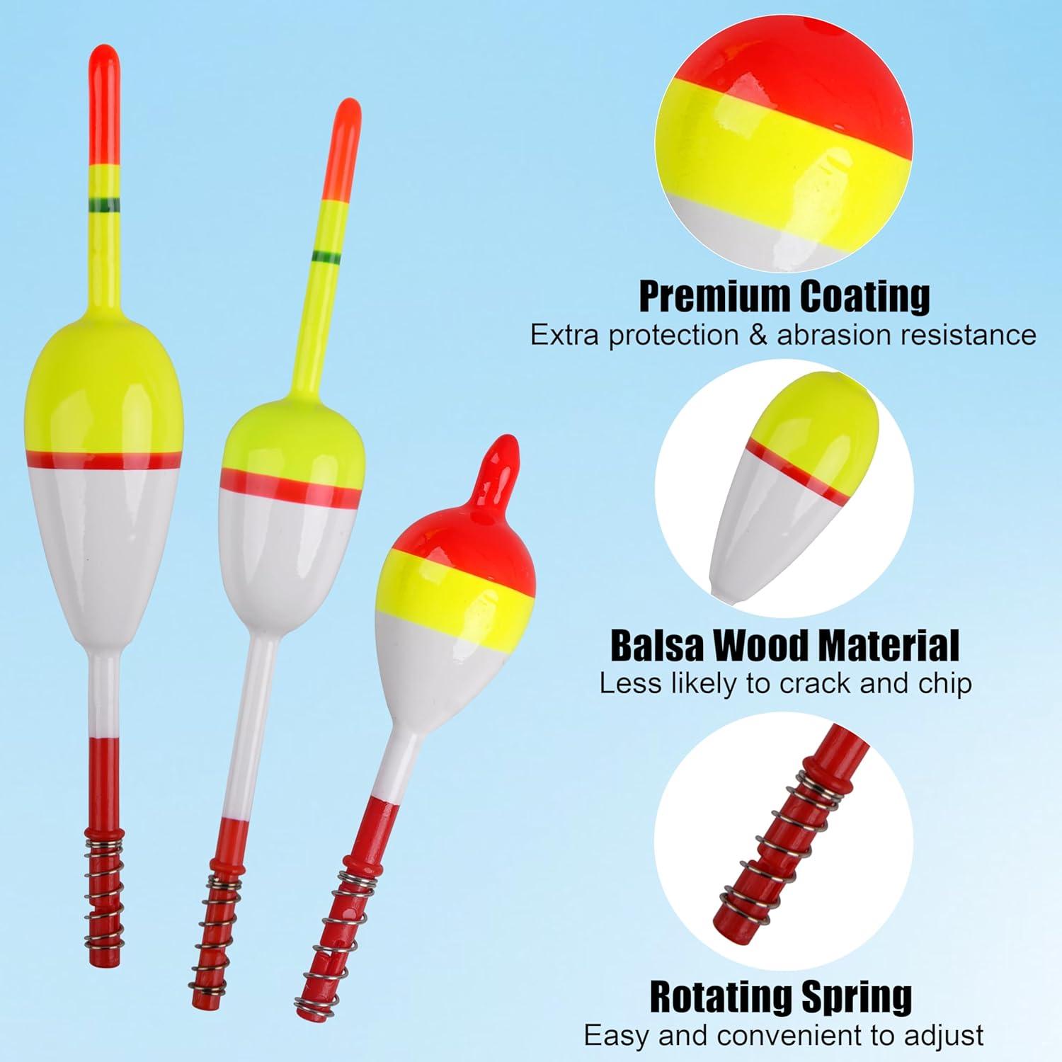 【Durable & Reliable】Made of high quality balsa wood, our slip float bobbers for fishing are durable break and chip resistant finish. The spring is strong, corrosion resistance and rust resistance, durable and practical for using a long time.