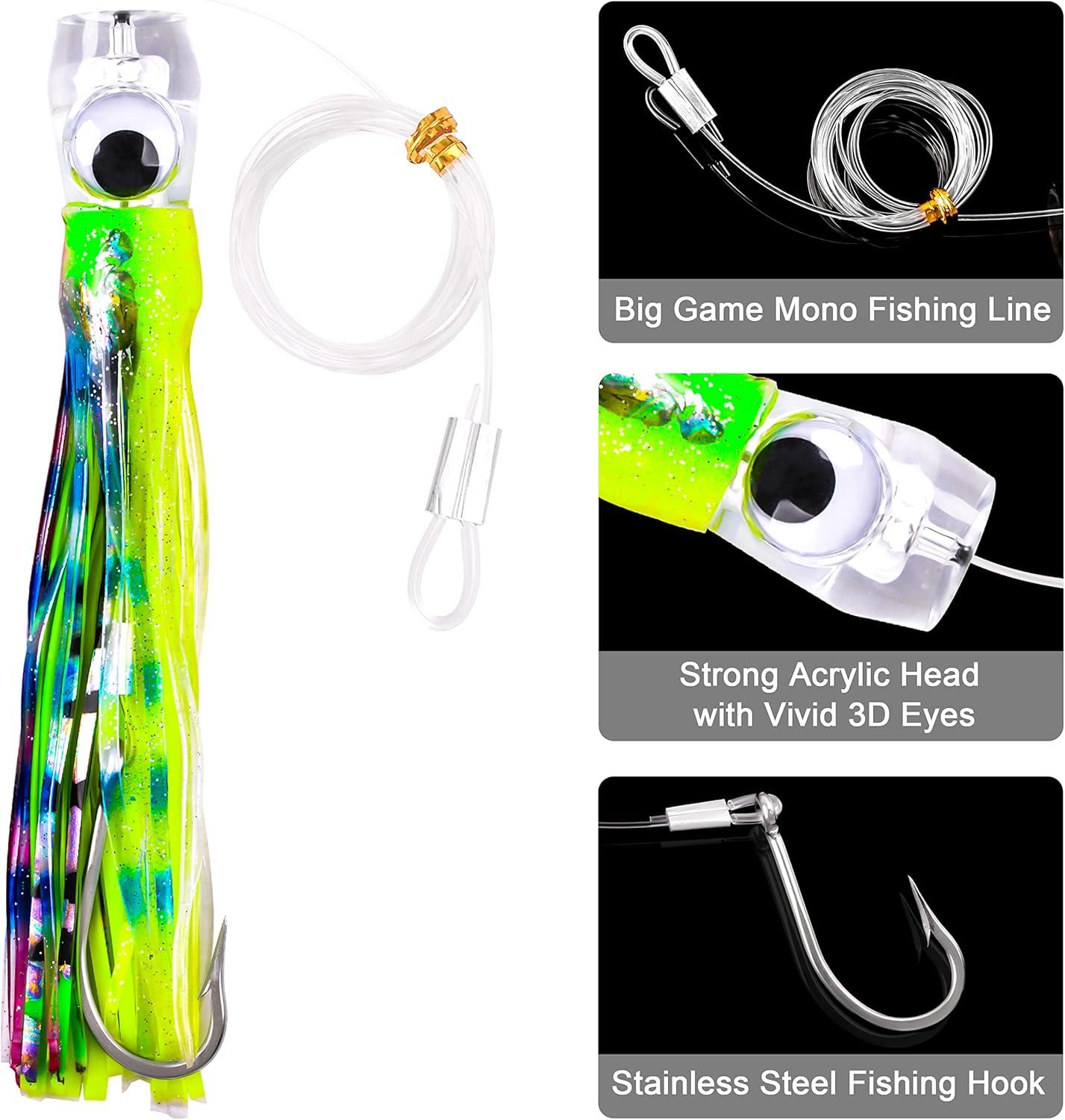 OROOTL Fishing Trolling Lures Saltwater Fishing Lures Deep Sea Fishing Lures for Marlin Tuna Mahi Dolphin Wahoo Shark Big Game Ocean Fishing Lures Set