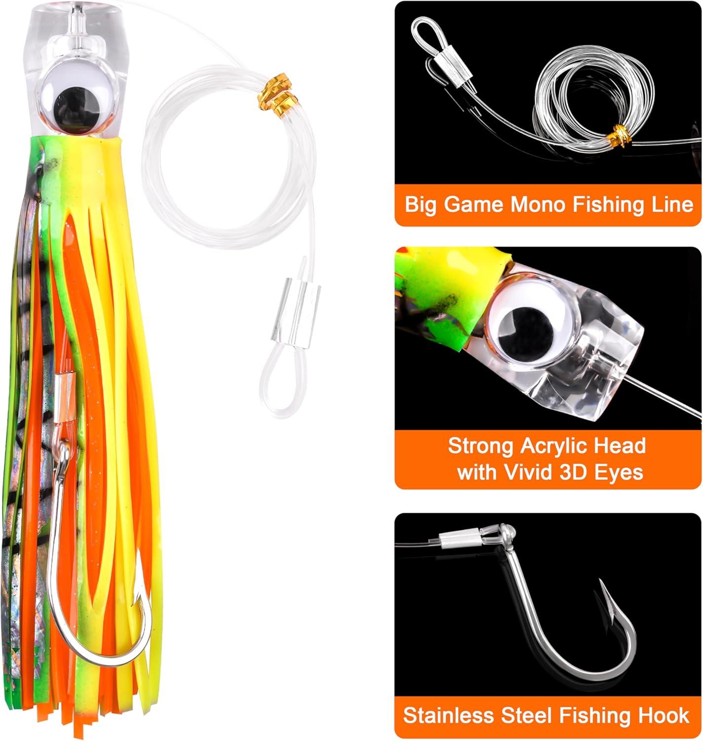 OROOTL Fishing Trolling Lures Saltwater Fishing Lures Deep Sea Fishing Lures for Marlin Tuna Mahi Dolphin Wahoo Shark Big Game Ocean Fishing Lures Set