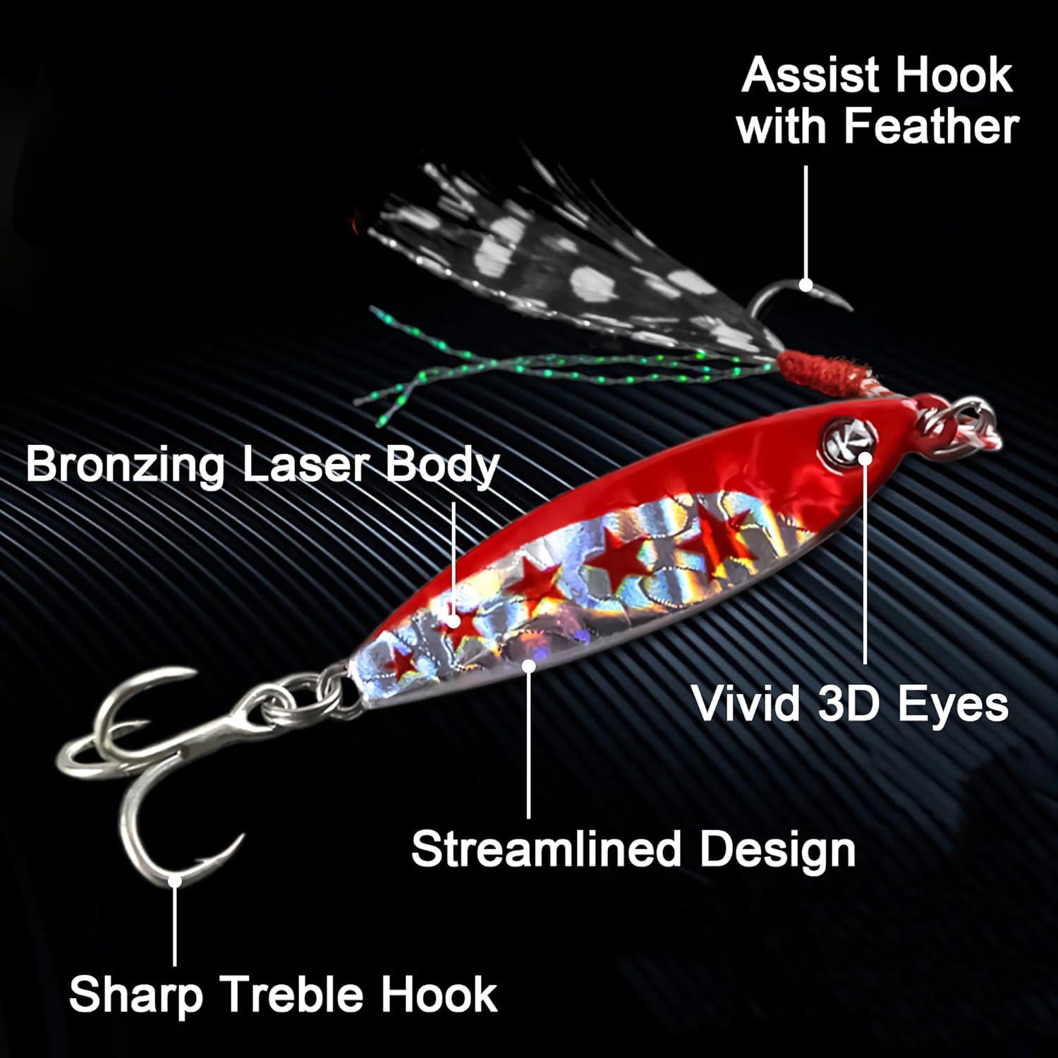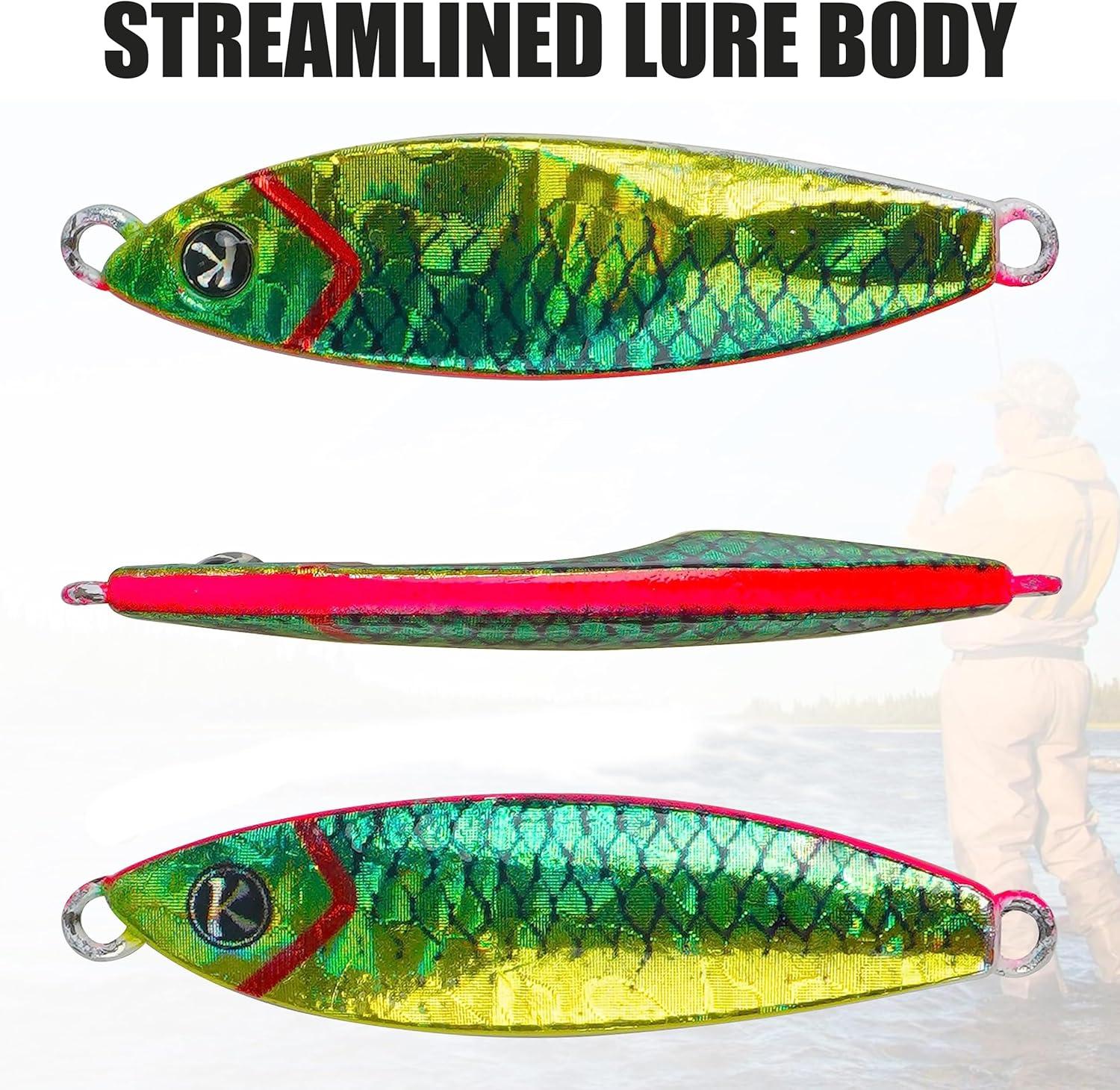 【Lifelike Jig Lures】The saltwater jigging lures have 3D holographic eyes, realistic fish scale design and laser holographic painted to produce a true-to-life look underwater.