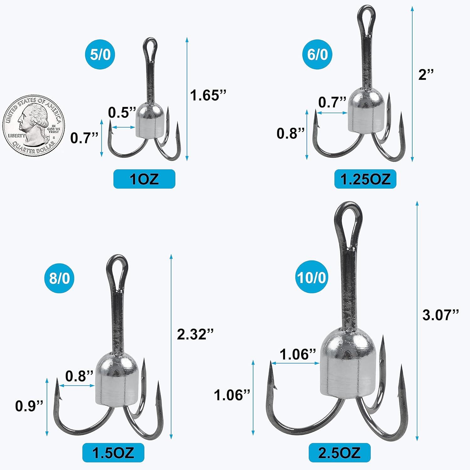 🐟【5 Size for Your Choice】5/0(1oz)-6pcs; 6/0(1.25oz)-6pcs; 8/0(1.5oz)-5pcs; 10/0(2.5oz)-4pcs; or Mix Sizes-6pcs (5/0-2pcs,6/0-2pcs, 8/0-1pcs, 10/0-1pcs). A perfect gift for fishing enthusiasts!