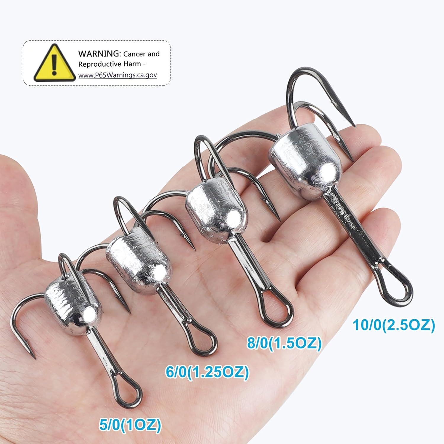 🐟【5 Size for Your Choice】5/0(1oz)-6pcs; 6/0(1.25oz)-6pcs; 8/0(1.5oz)-5pcs; 10/0(2.5oz)-4pcs; or Mix Sizes-6pcs (5/0-2pcs,6/0-2pcs, 8/0-1pcs, 10/0-1pcs). A perfect gift for fishing enthusiasts!