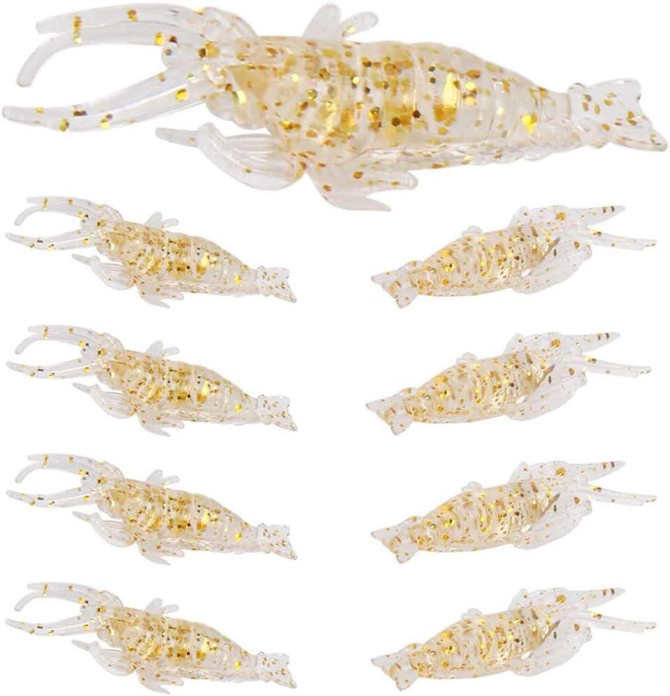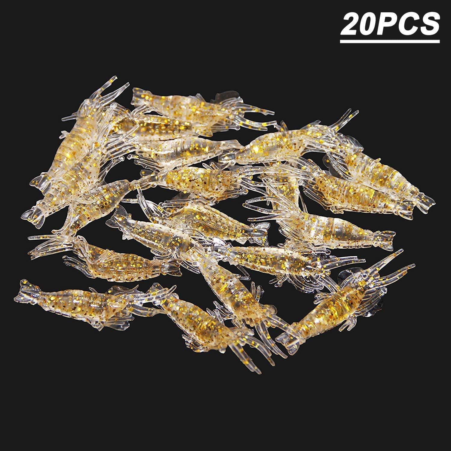 Soft Shrimp Lure Baits, 20pcs Artificial Shrimp Baits Glow Fishing Lures 5cm Silicone Prawn Shrimps Kit for Bass Crappie Walleye Trout Saltwater Freshwater Fishing(Golden)