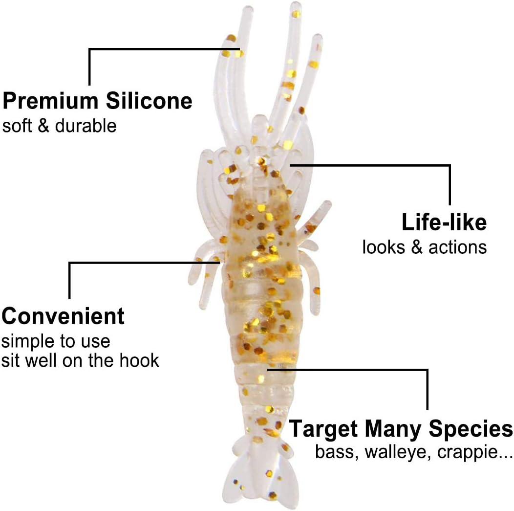 ๐ DURABLE: Made of premium silicone material, these artificial shrimp baits are soft and durable, won't disintegrate after driving the hook through and catch fish.