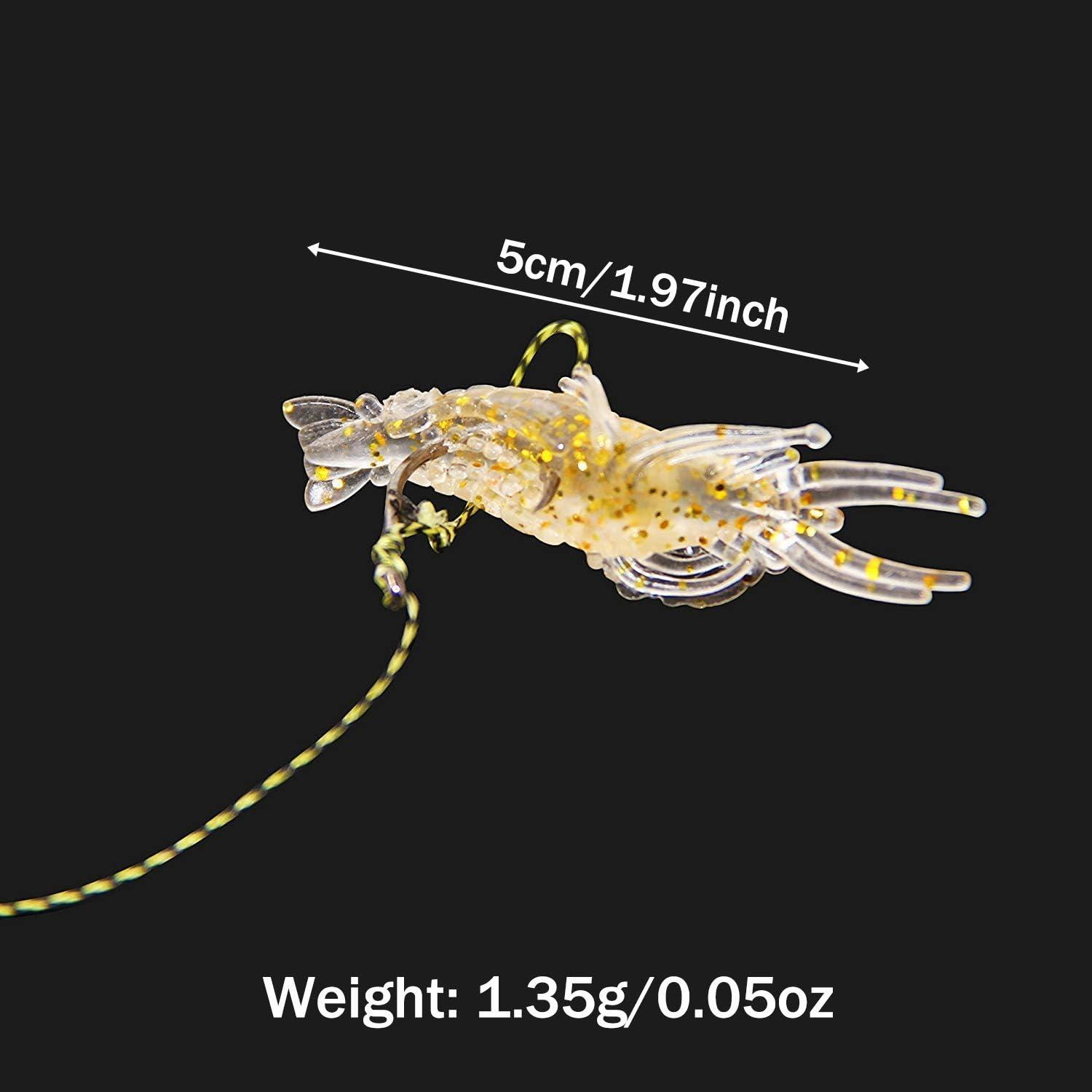 ๐ QUANTITY: 20pcs/pack soft shrimp fishing lures. (Colors: luminous/ green/ golden/ white. Lure Length: 5cm/2inch)