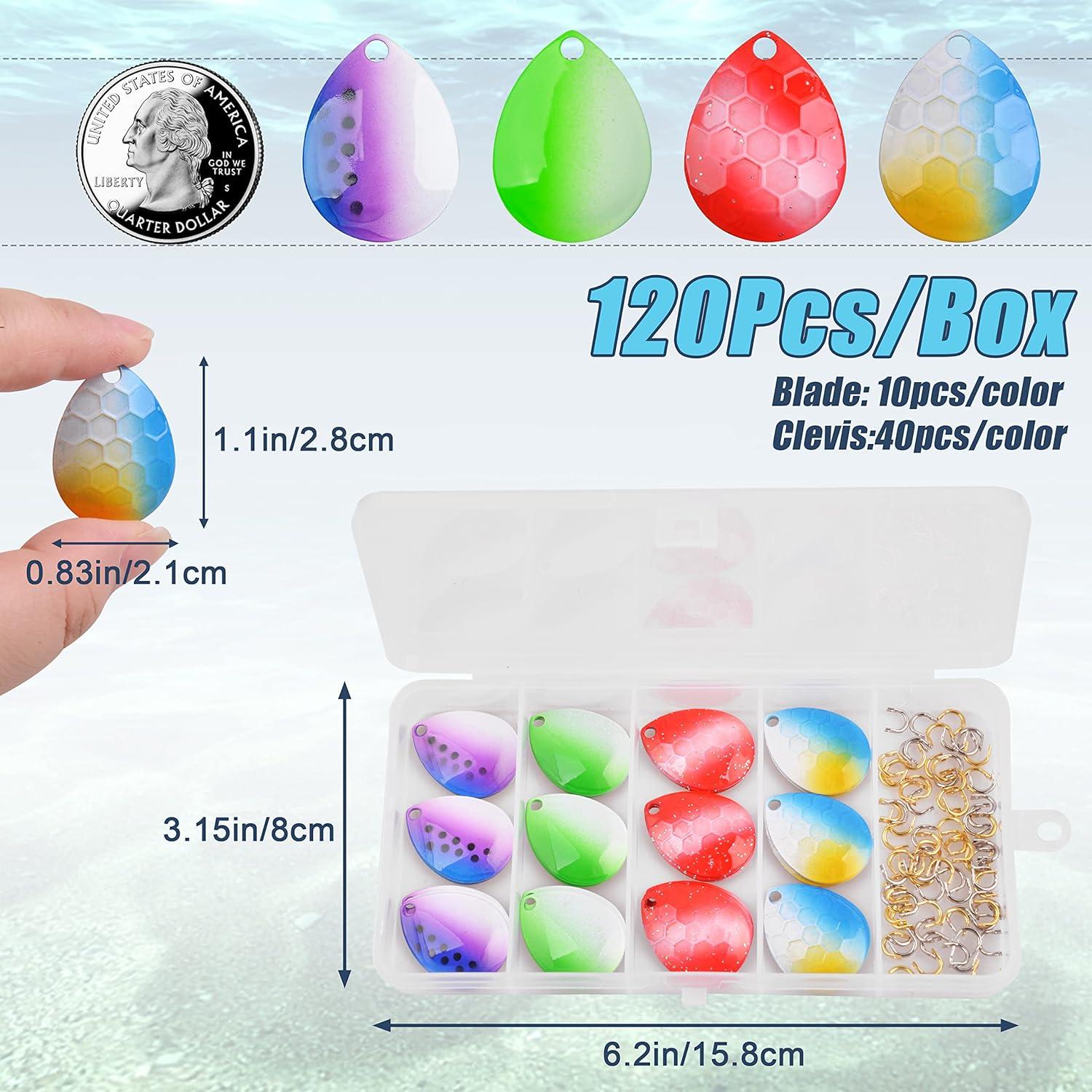 Spinner Blades Fishing Clevis Kit, 120pcs Fishing Blades Spinner Clevis Set Colorado Blades Easy Spin Brass Clevis Fishing Lure Making Accessories for Walleye Rig Spoon Inline Spinnerbaits