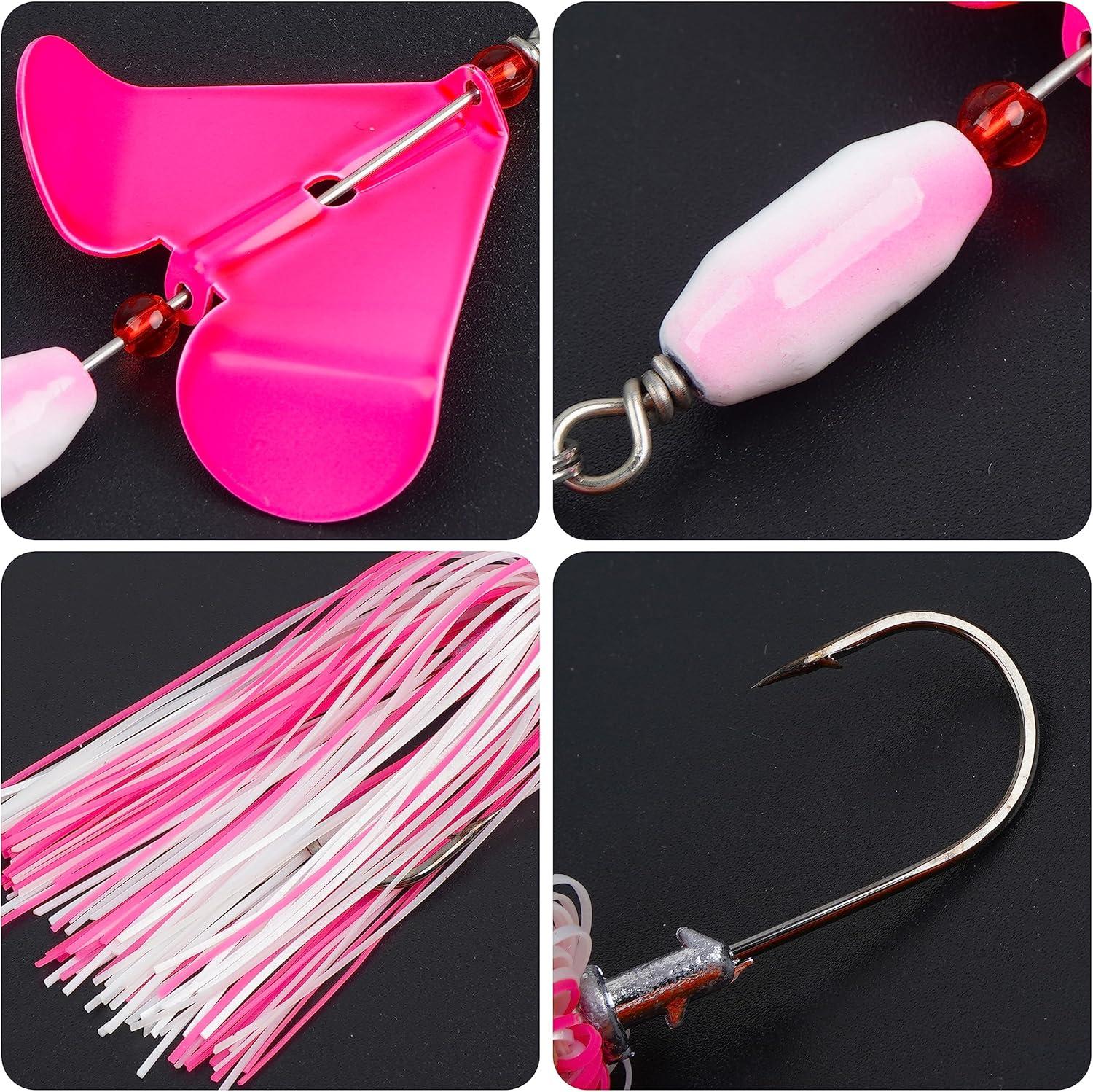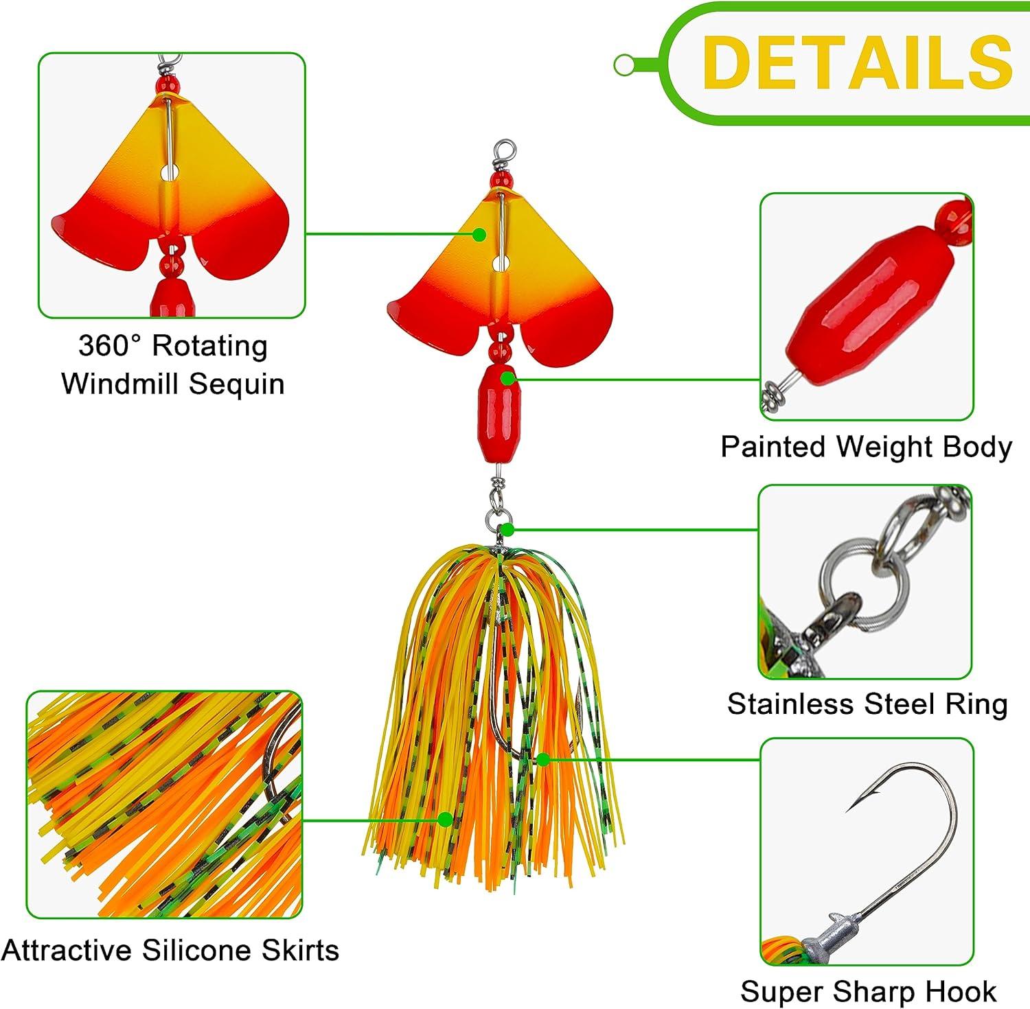 【REALISTIC LOOK & ACTION】This spinner lures feature a 3D eyes and 100-strand skirts in naturalized but enticing colors to trigger strikes. The windwill blades create the easiest and fastest spinning action possible, send out sonic vibrations that entice fish, increasing your chances of making a catch.
