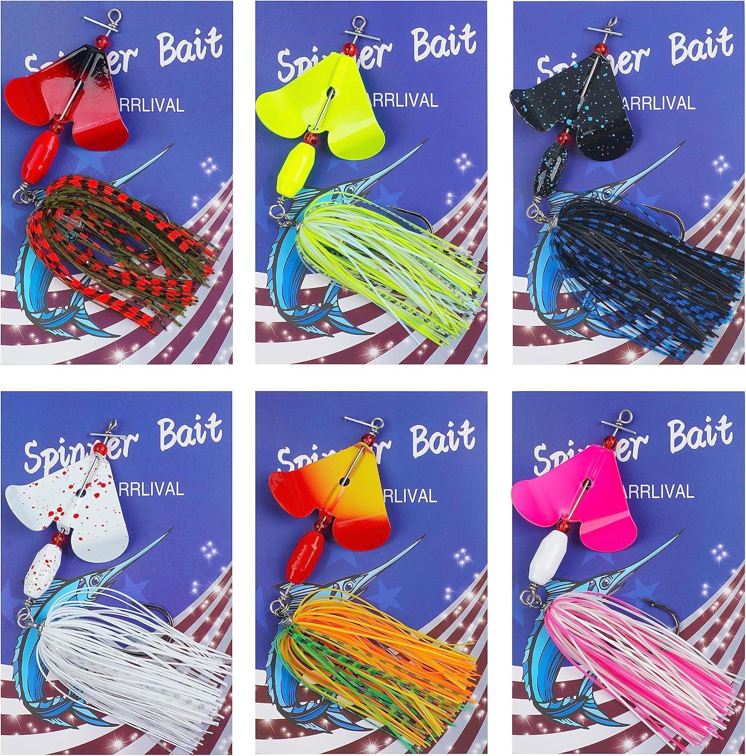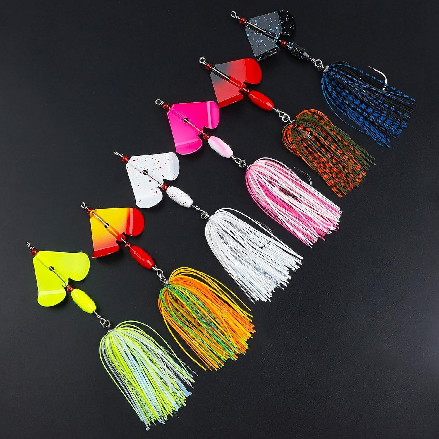 Spinnerbait Fishing Lures Kit Set, 6pcs Bass Fishing Buzzbait Multicolor Bass Trout Salmon Metal Spinner Baits Swim Jigs Freshwater Saltwater Fishing(Style B-6pcs)