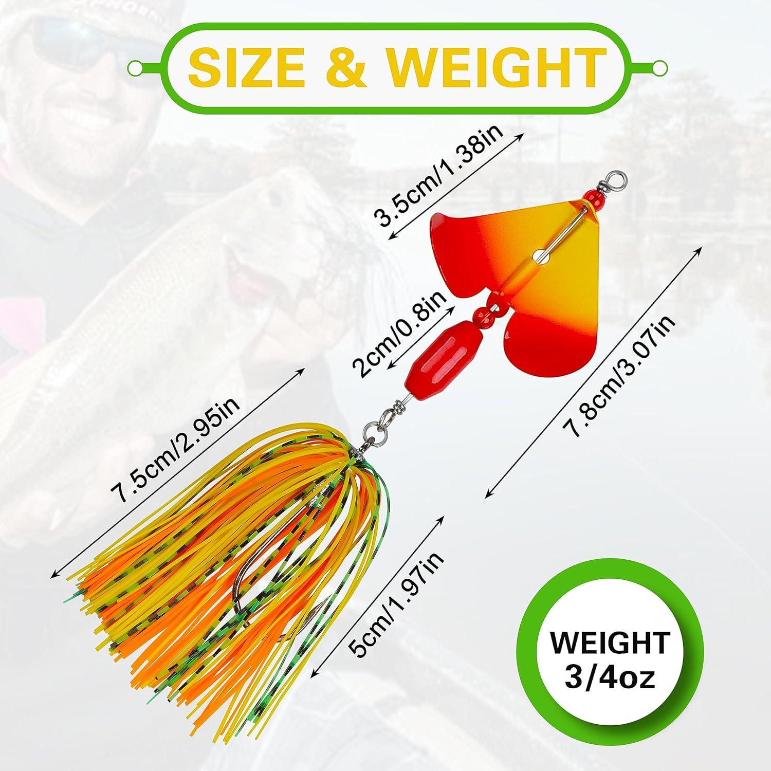 【UNIQUE DESIGN】The buzz bait is composed of steel wire, rotating windwill triangle-blade, lifelike fish head jigs and plastic skirts. Buzzbait is a great tool for locating bass in the shallows, also an important one for finding fish.
