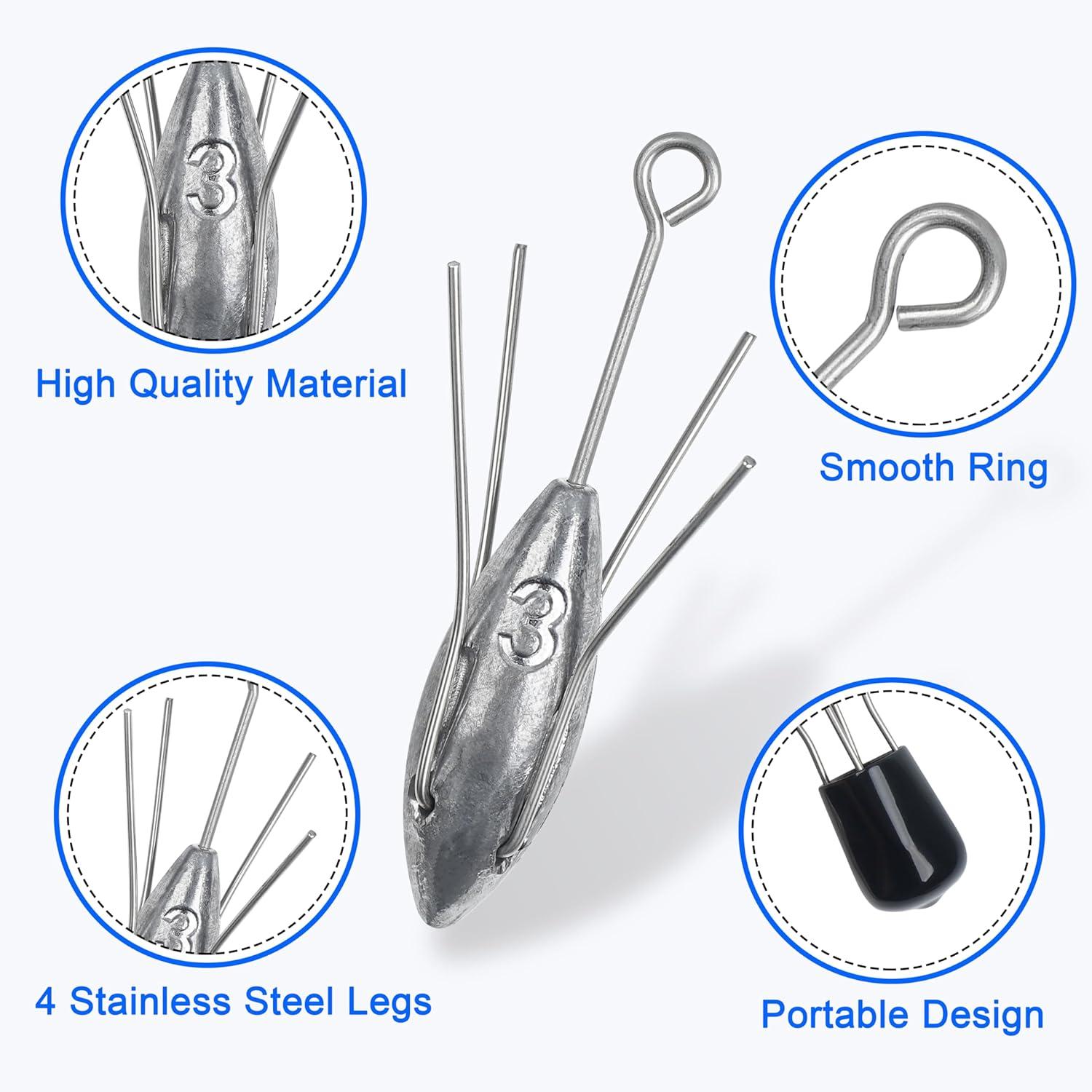 【Special Design】With 4 stainless steel legs, the surf fishing sinkers can stand firmly in the sand and hold even in strong water currents. Spider leg easy on the retrieve, ensuring smooth disengagement when caught on rocks or water plants at the bottom