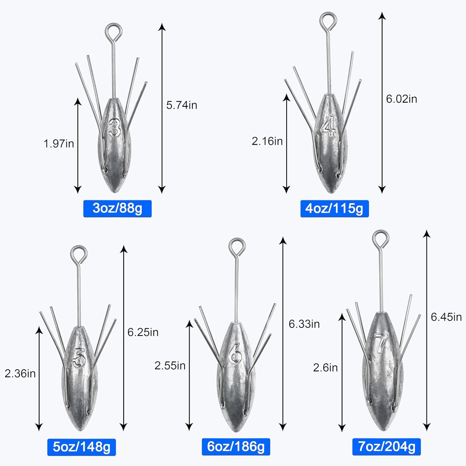 【5 Sizes】The package contains 3 pieces of fishing sinkers and weights, available in 3oz, 4oz, 5oz, 6oz, 7oz. Sputnik sinkers weights with sufficient quantity satisfied your daily fishing use