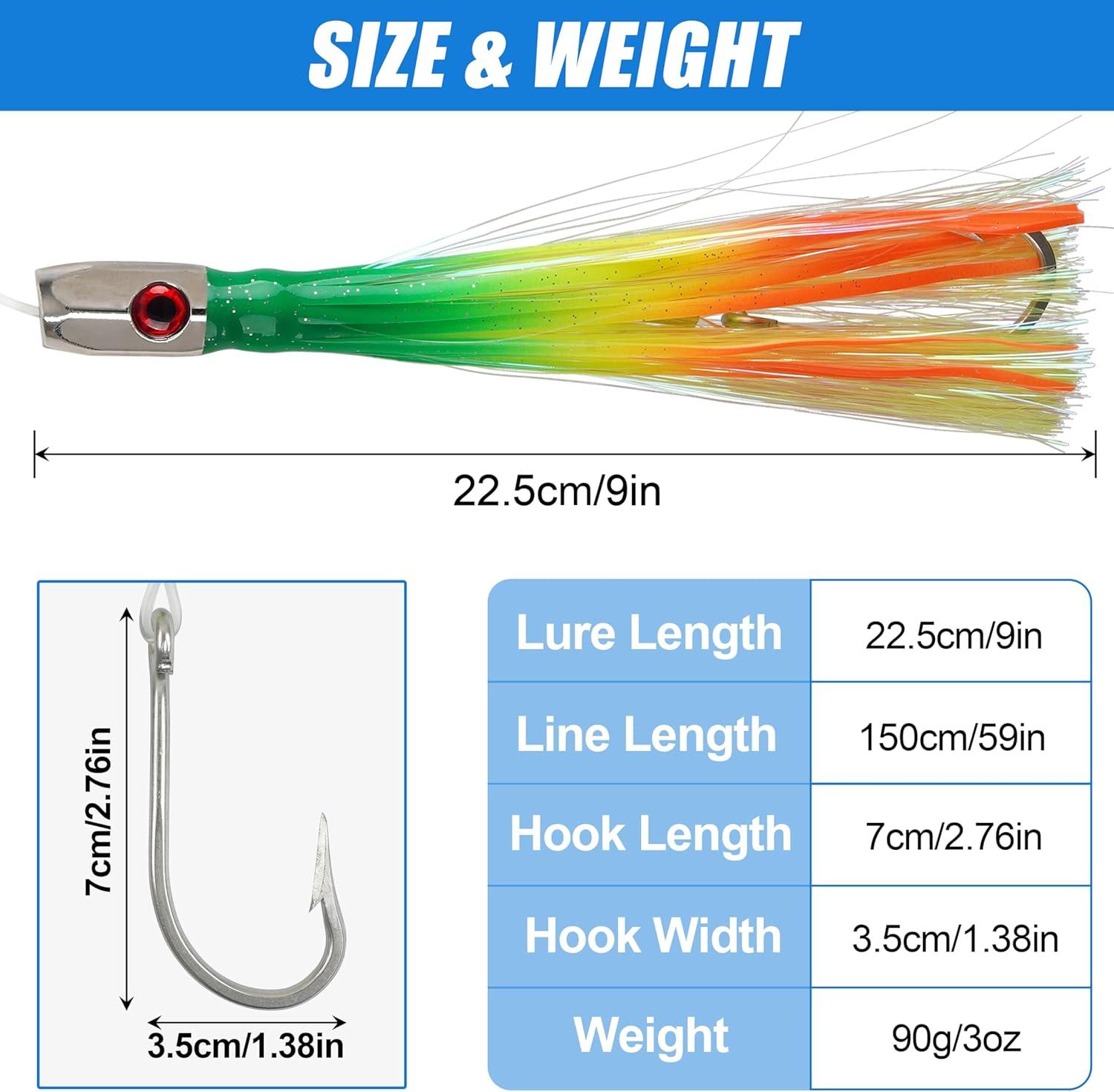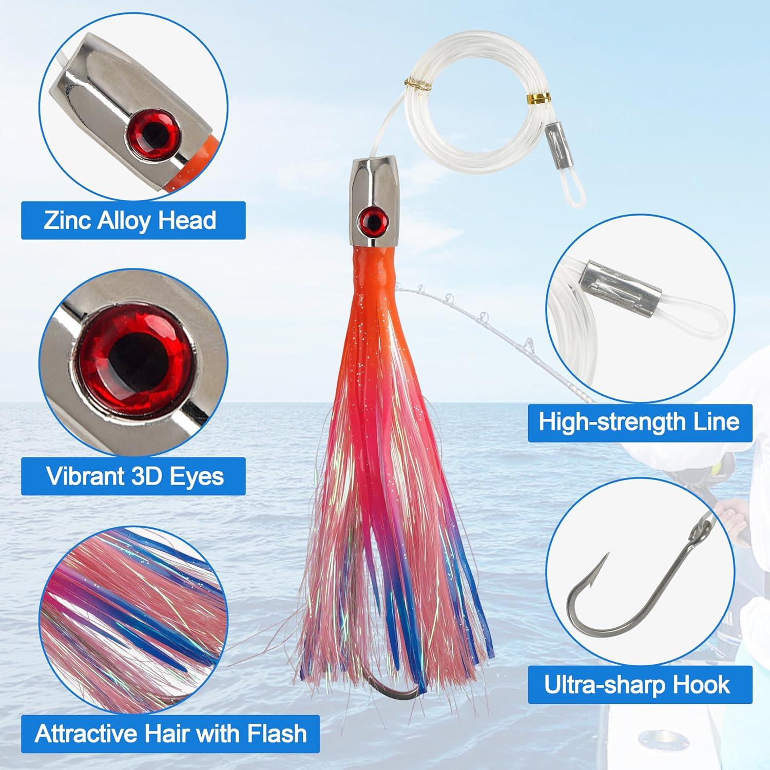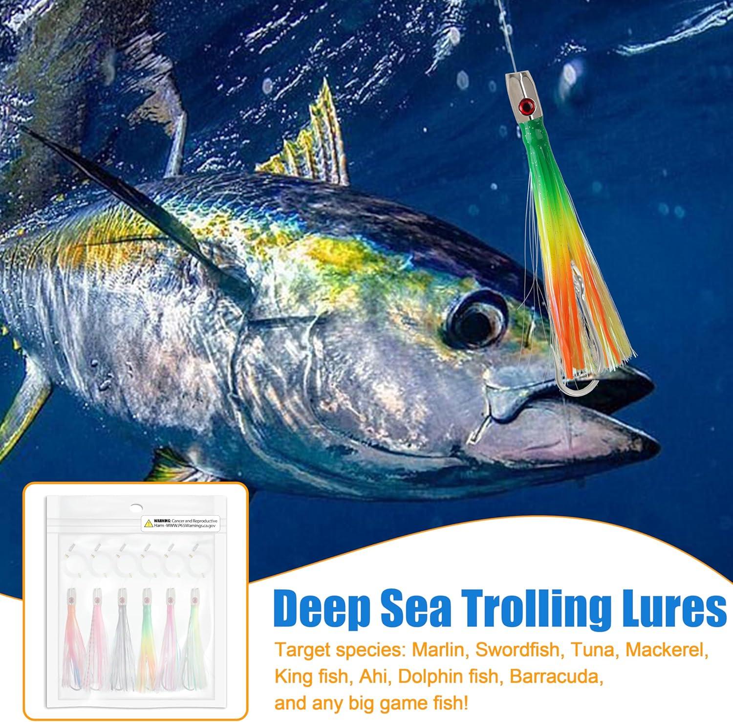 【Target Species】These trolling lures saltwater designed to attract Tuna, Dolphin, Mahi Mahi, Wahoo, Marlin, Sailfish, Mackeral, Kingfish, Ahi, Barracuda and any big game predatory fish in the ocean!
