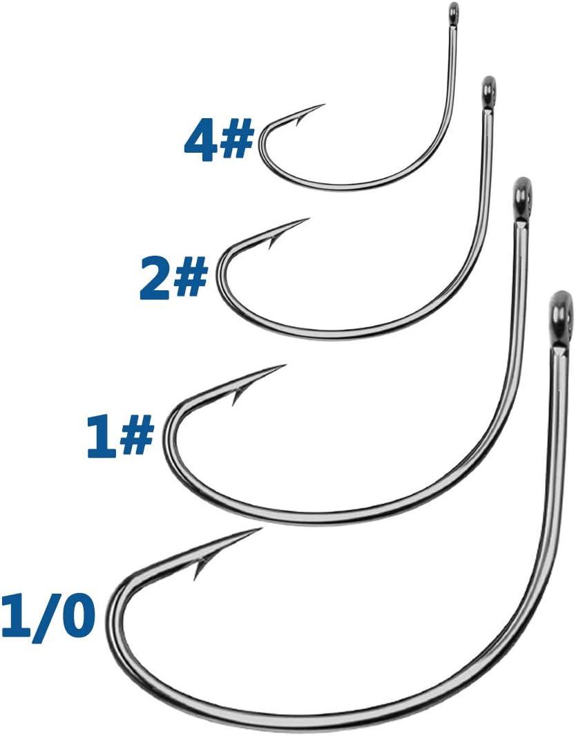 Wacky Worm Fishing Hooks, 40pcs Wide Gap Offset Wacky Rig Hooks Kit for Bass Trout Saltwater Freshwater Fishing Size 1/0 1 2 4(1/0-40pcs)
