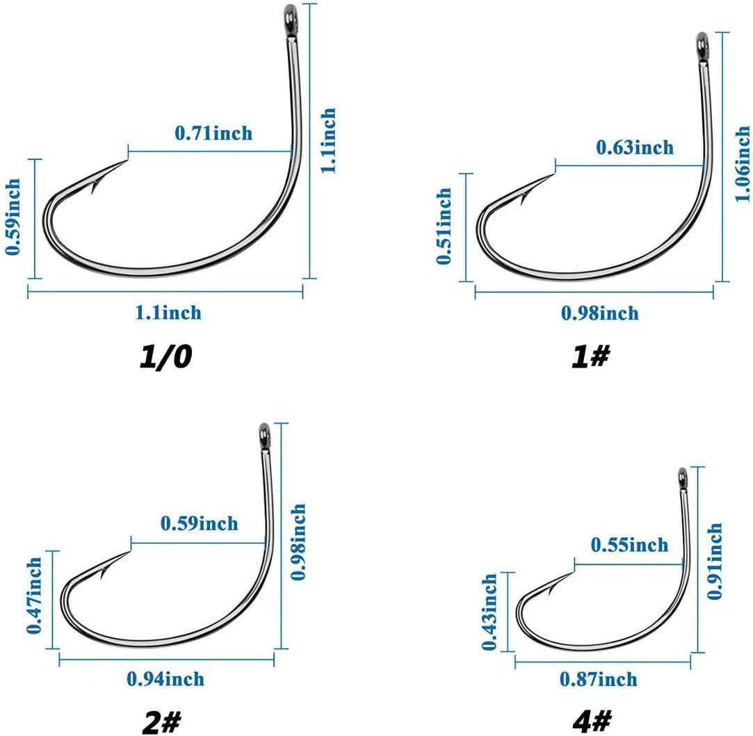 Wacky Worm Fishing Hooks, 40pcs Wide Gap Offset Wacky Rig Hooks Kit for Bass Trout Saltwater Freshwater Fishing Size 1/0 1 2 4(1#-40pcs)