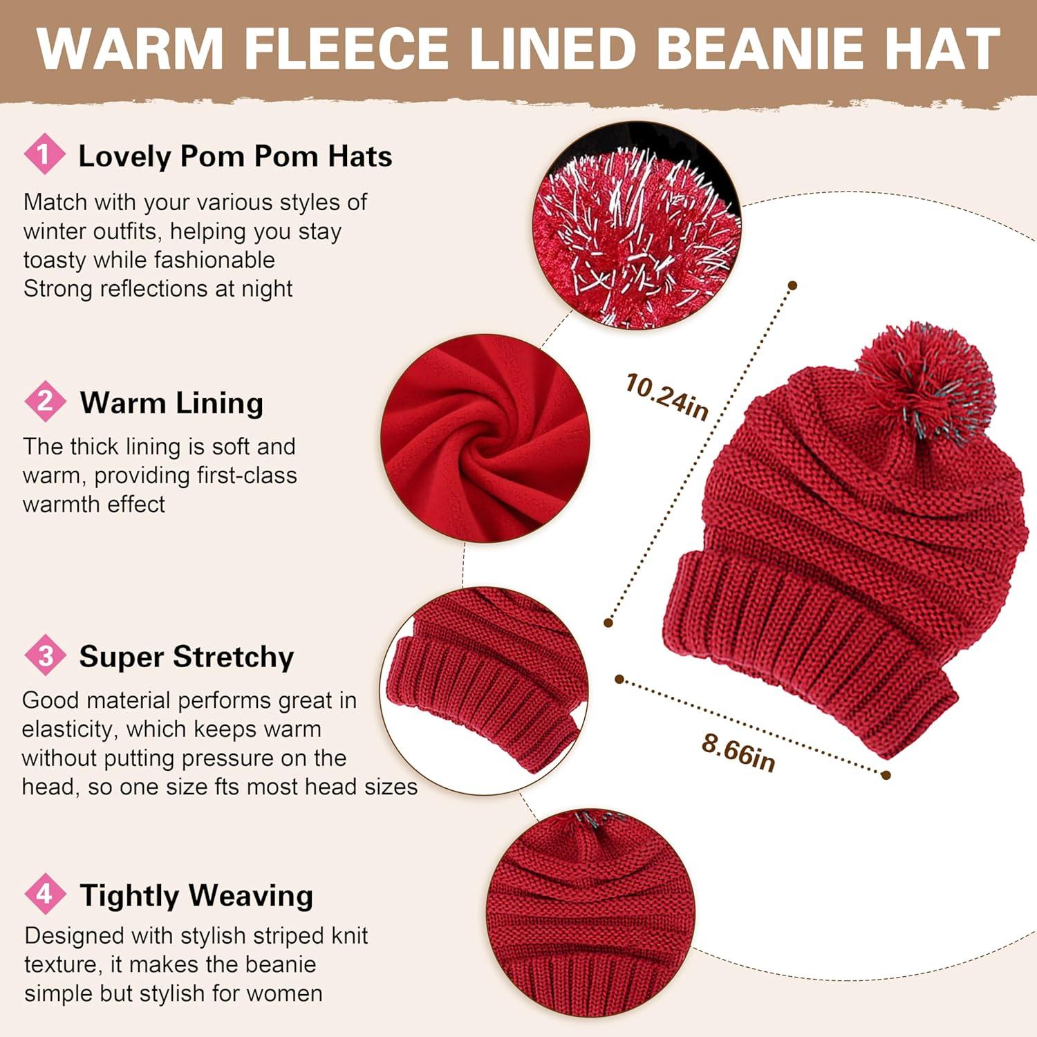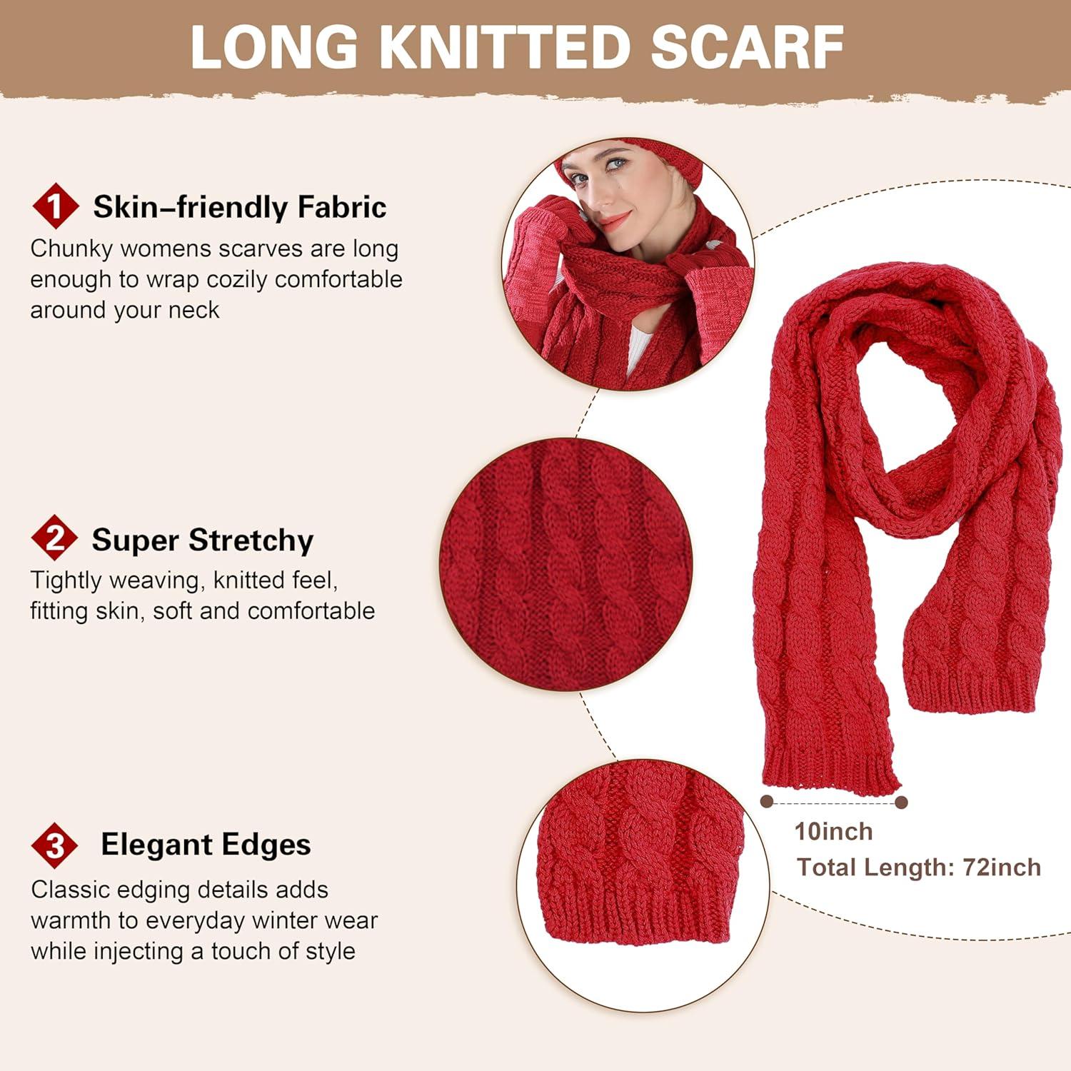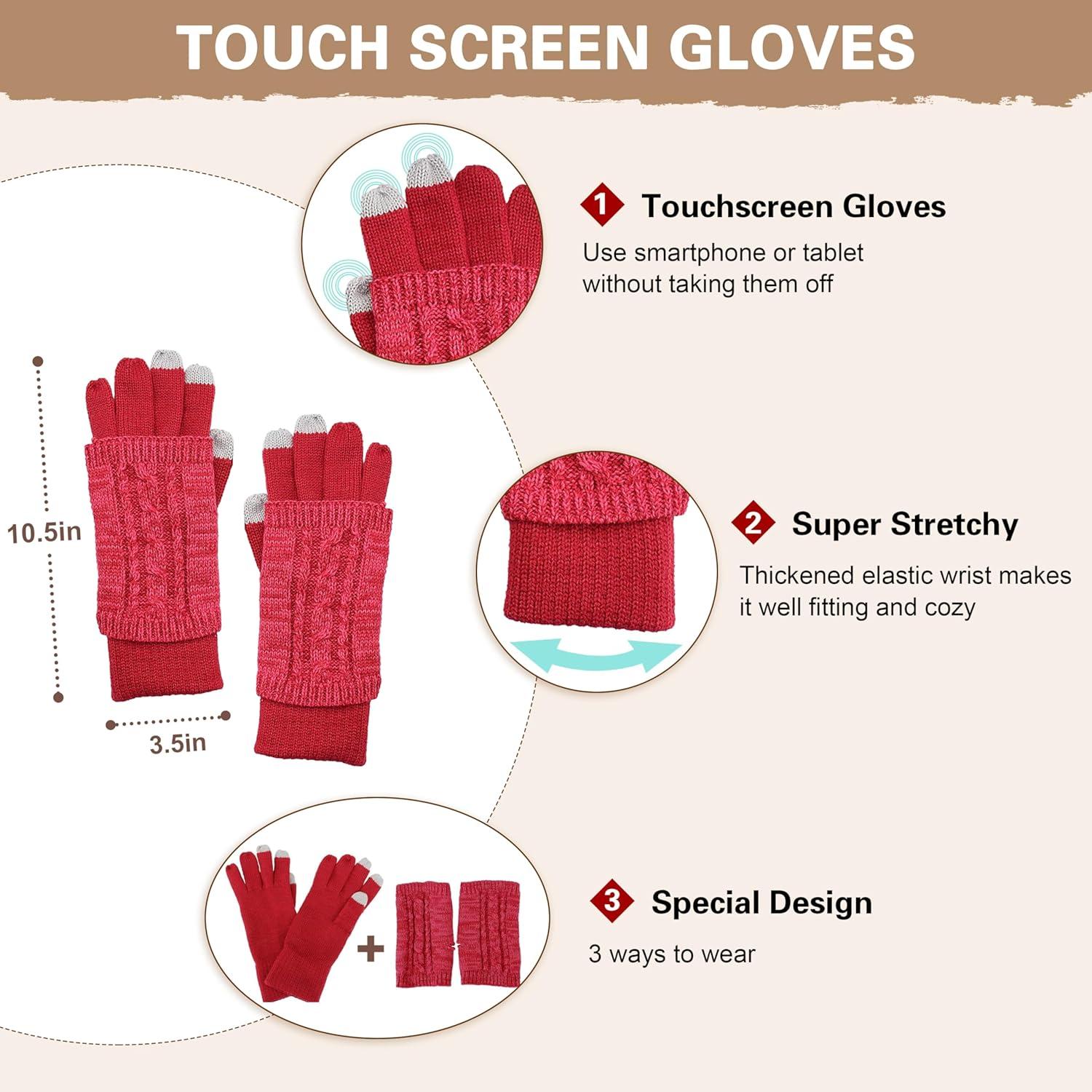 Winter Scarf Gloves and Hat Set for Women, Beanie Hat Long Scarf Touchscreen Gloves, Warm 3 in 1 Set for Womens Girls(Wine Red)